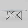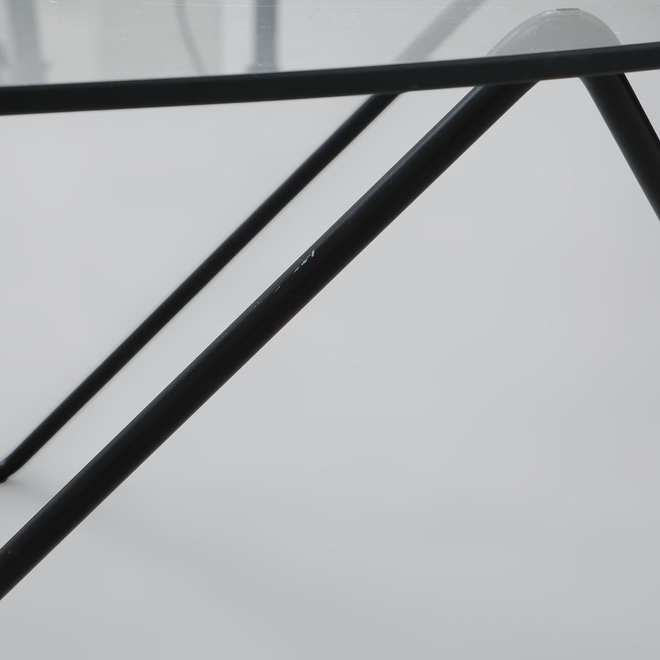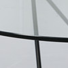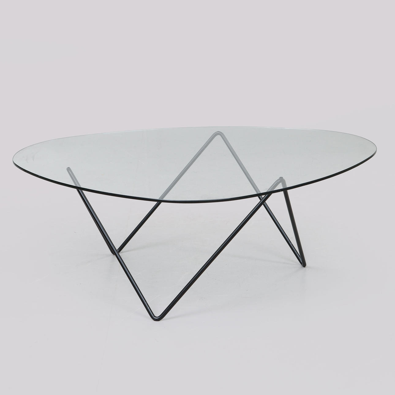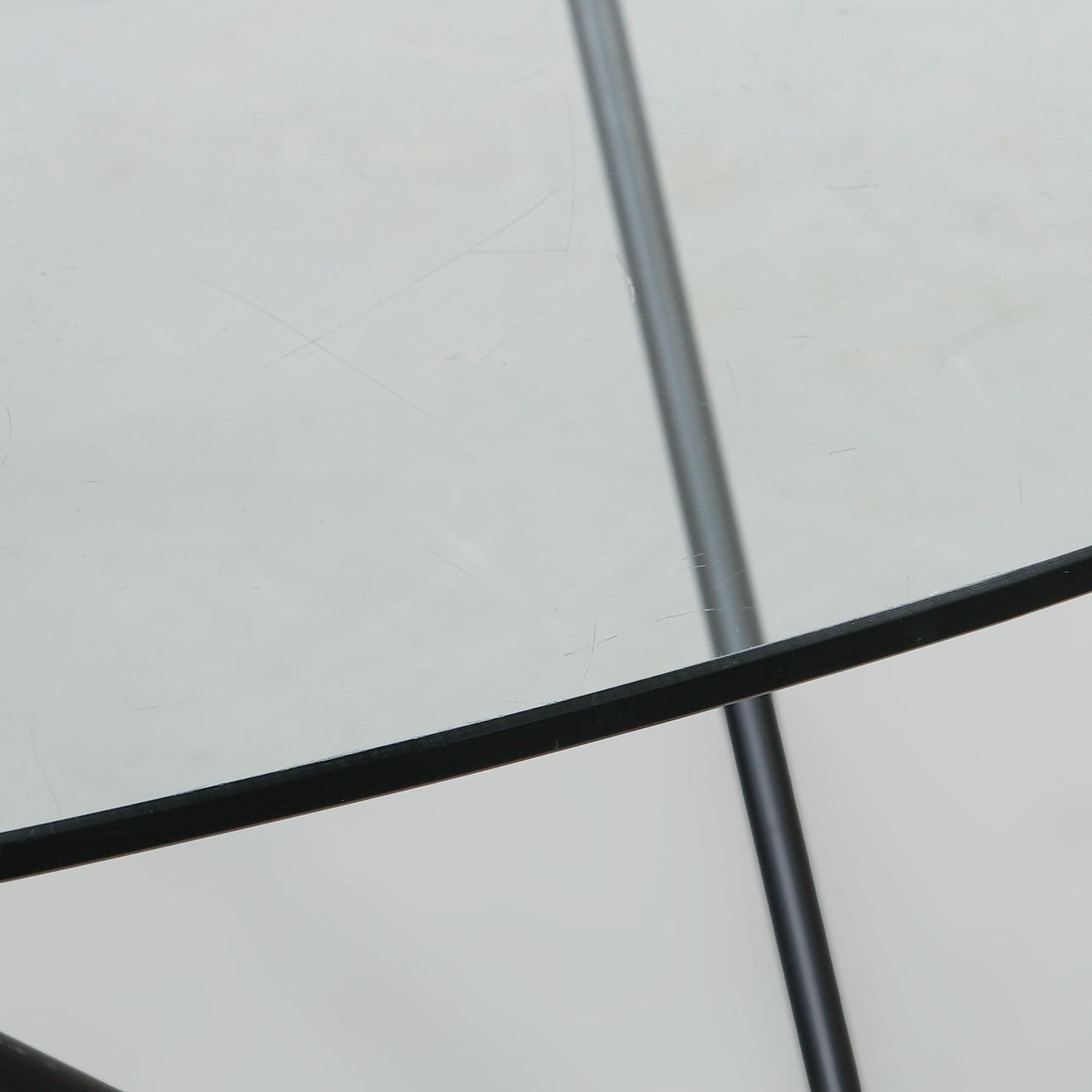 Leg stand made of blackened metal with glass disc. Length 106 cm, width 86 cm, height 37 cm.