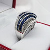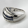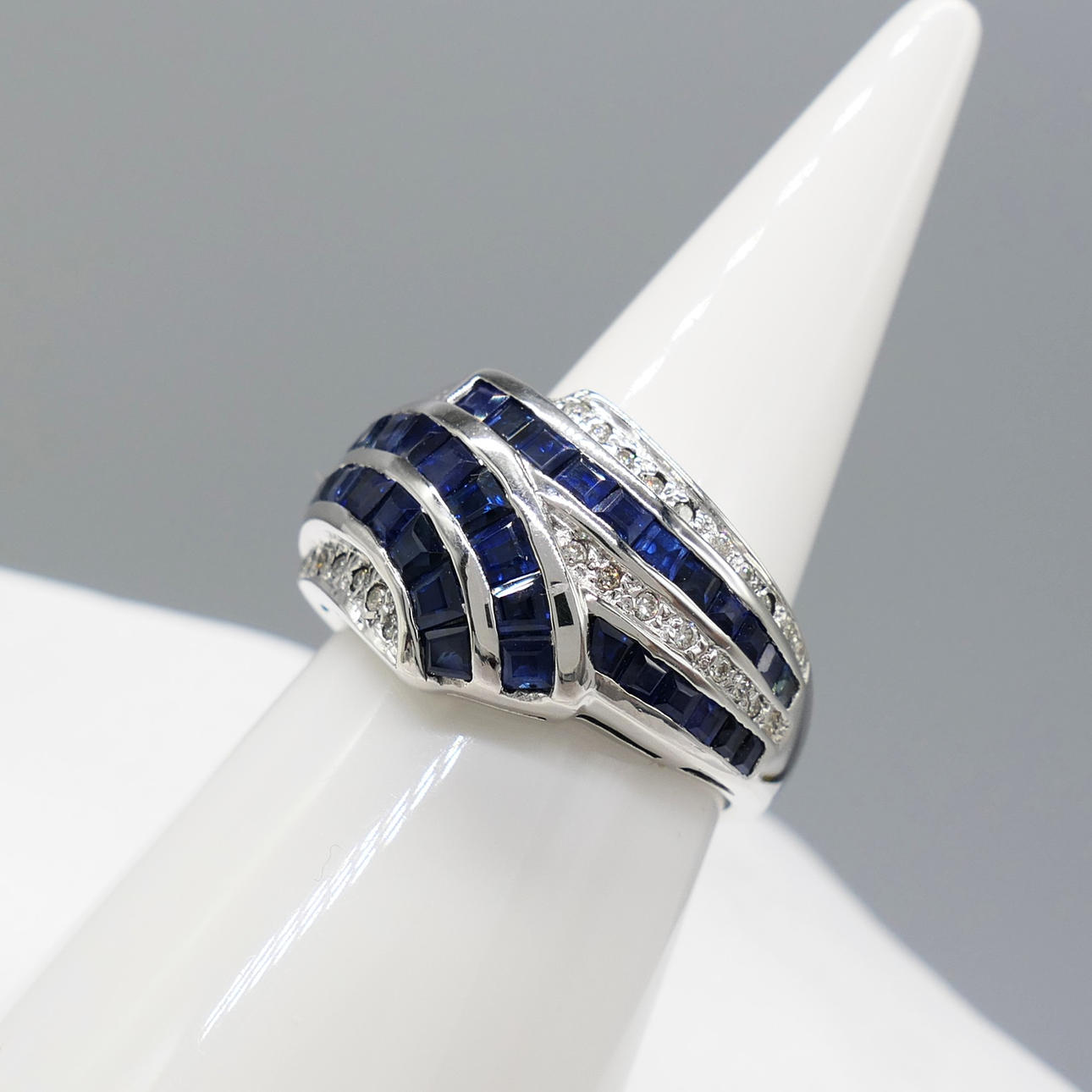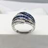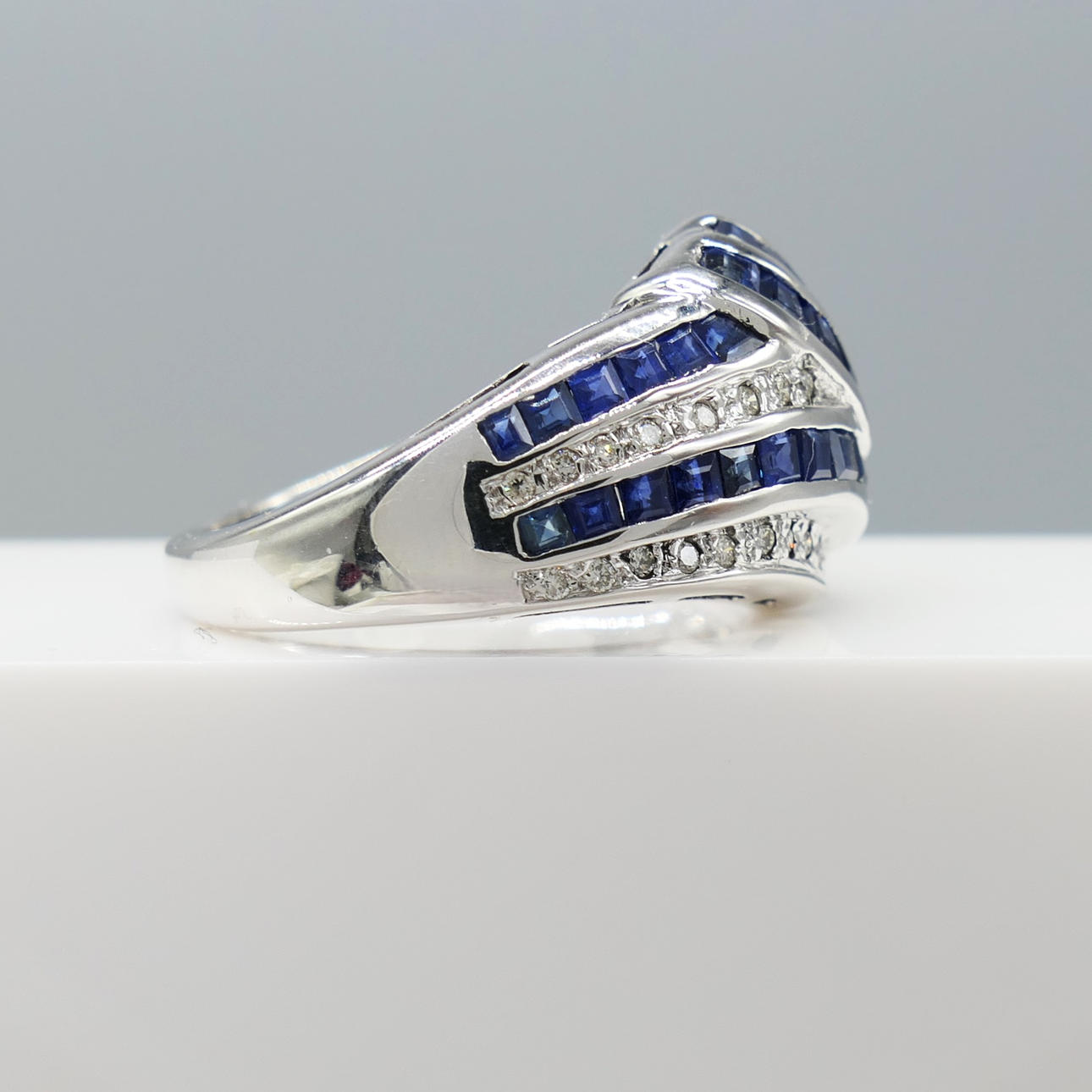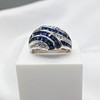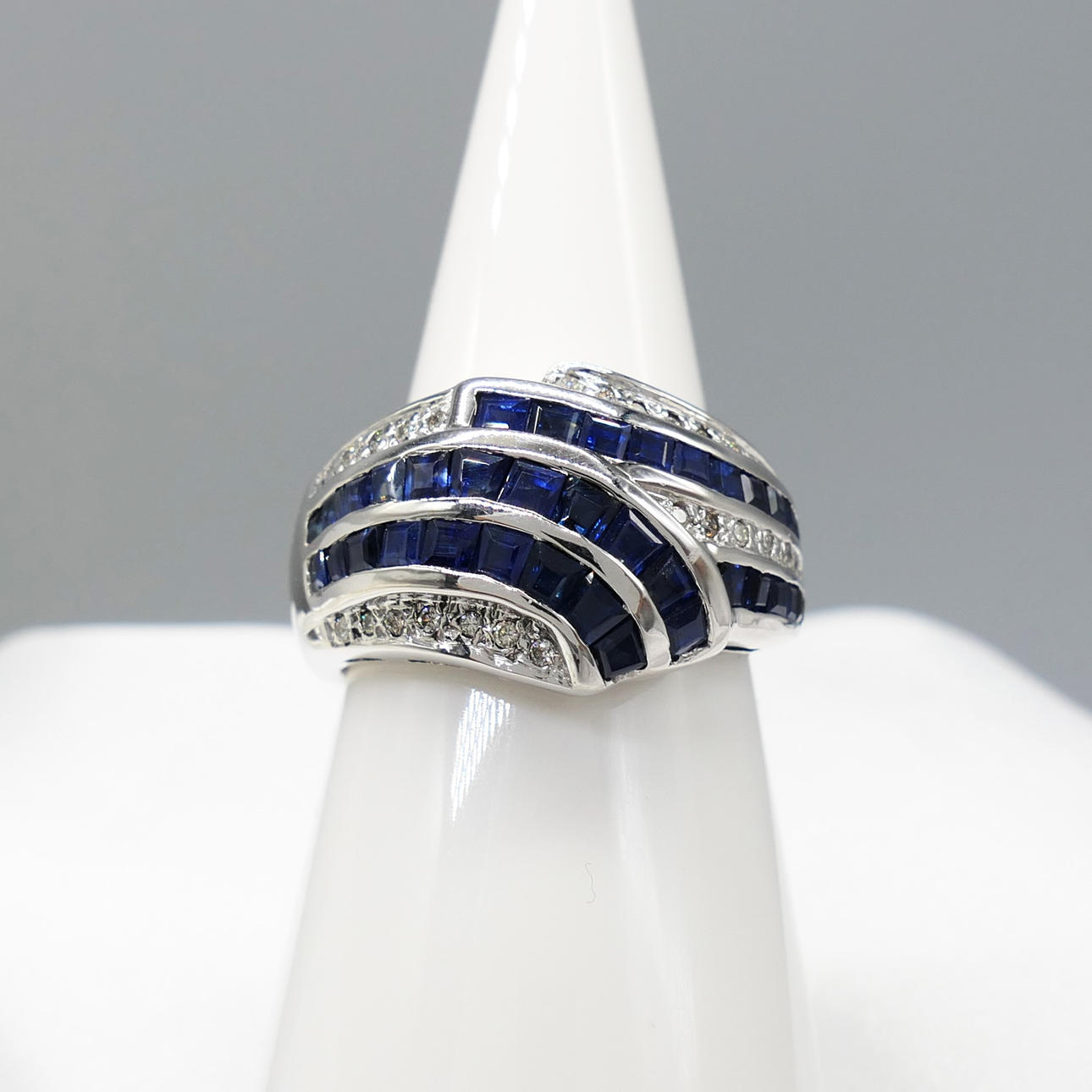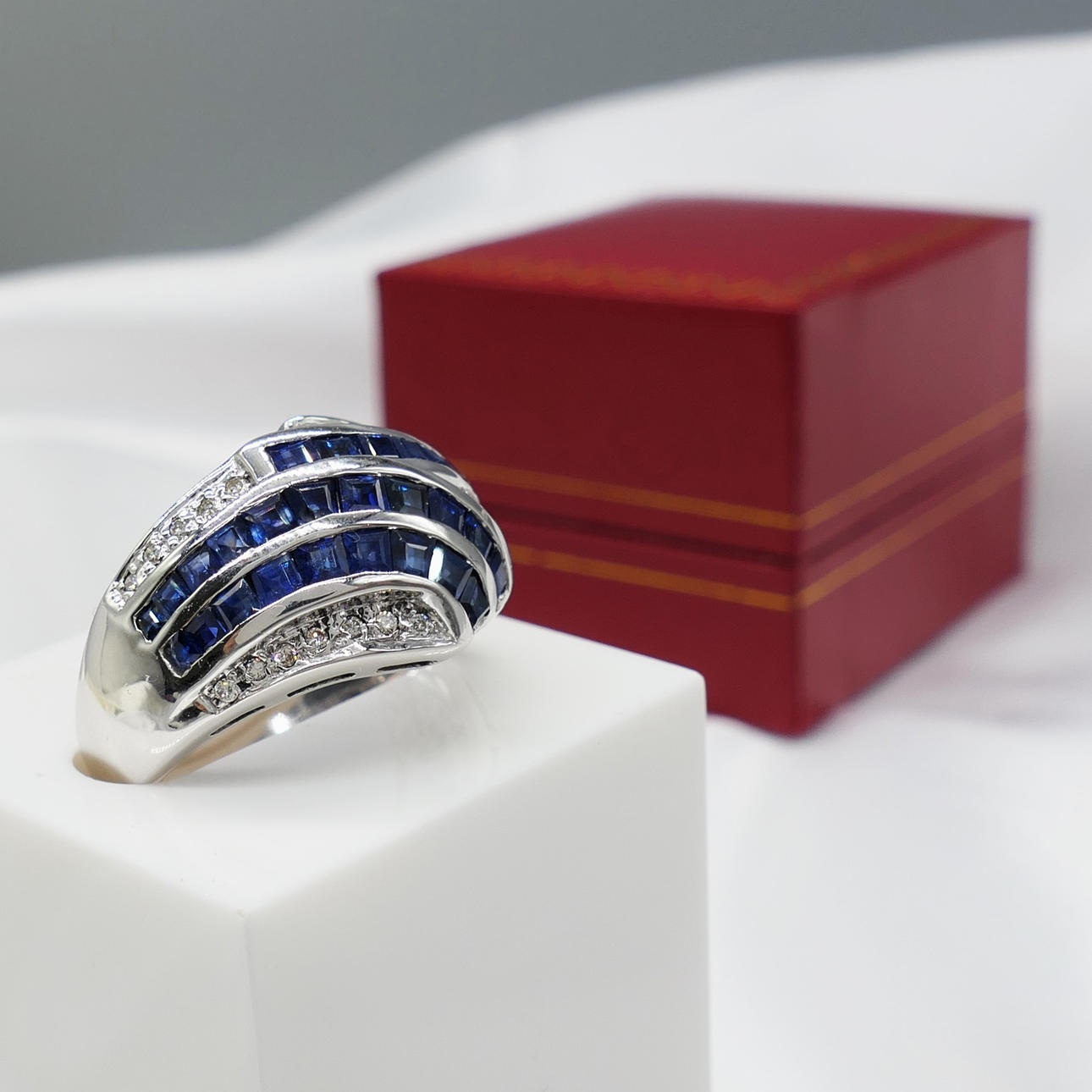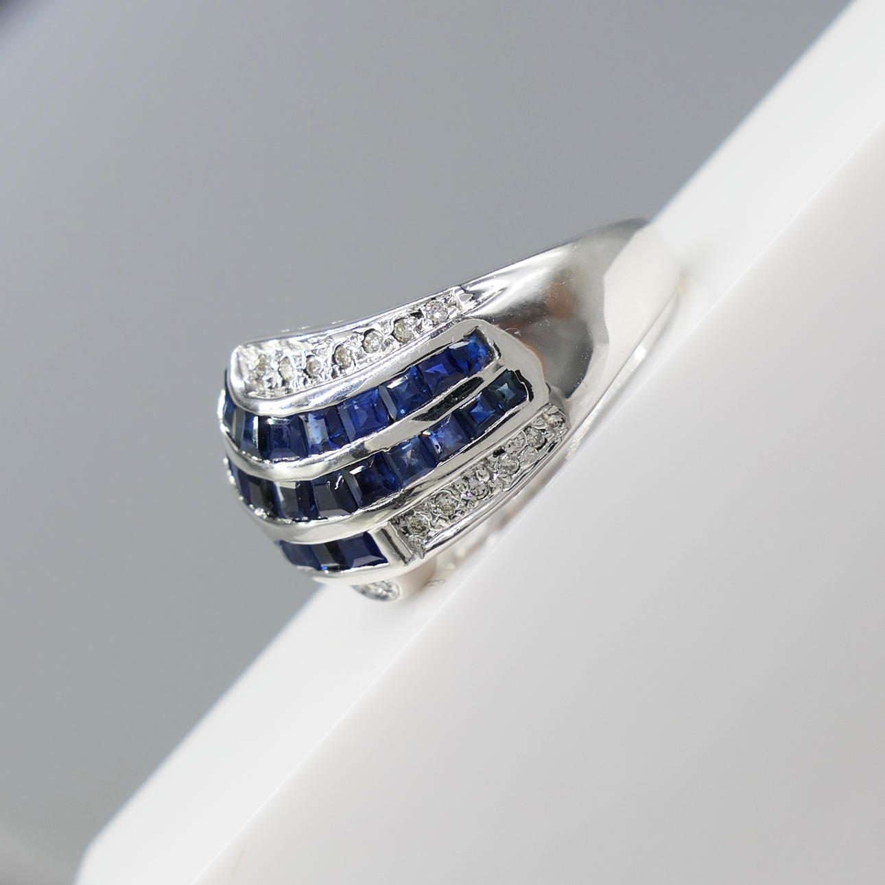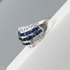 An 18k white gold Art Deco style, wave-inspired ring set with natural sapphires and diamonds, with gift box