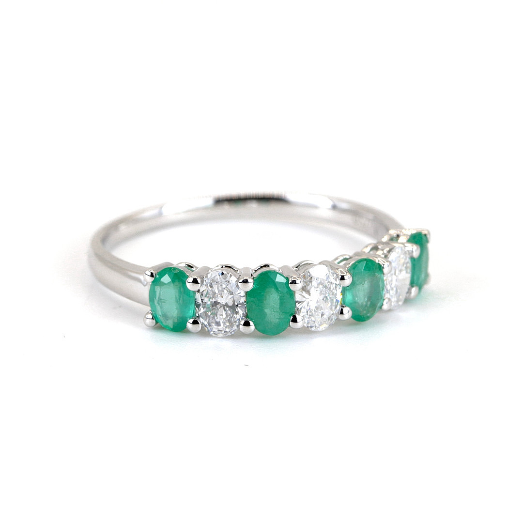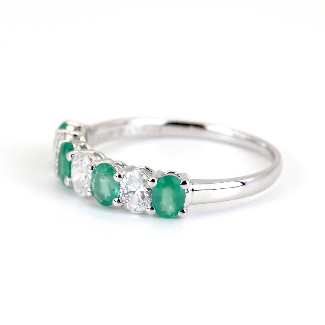 4971082. 18CT EMERALD AND DIAMOND RING.