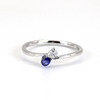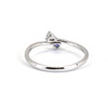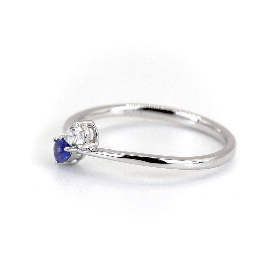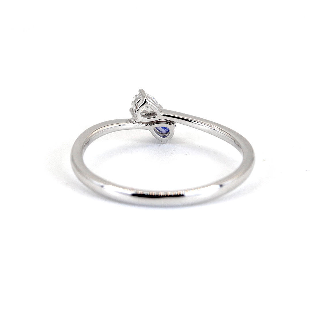A 9ct white gold ring set with a pear cut sapphire and diamond, UK ring size N.5.