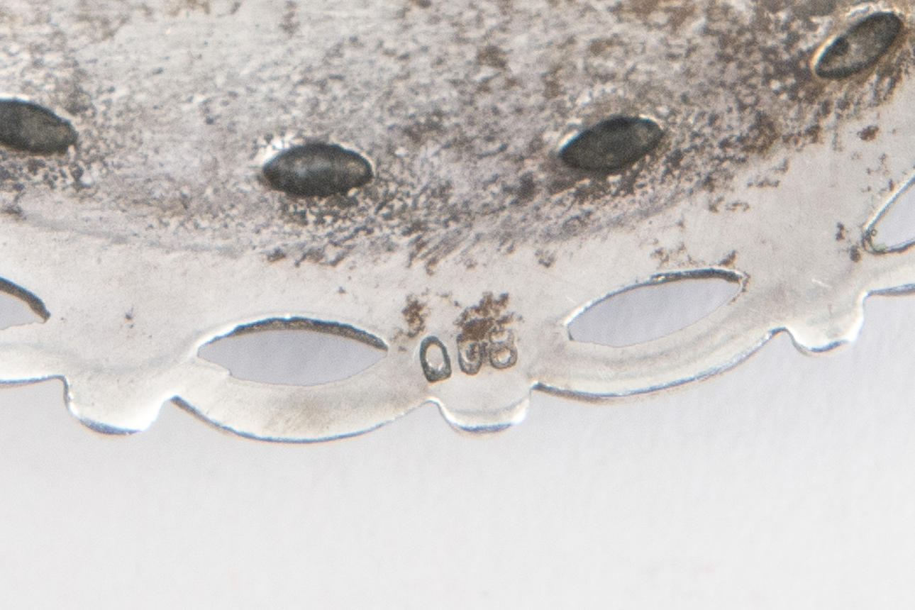 Oak leaves with solid silver balls. Stamped 830