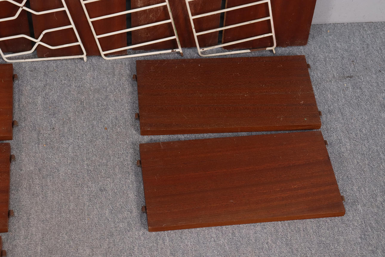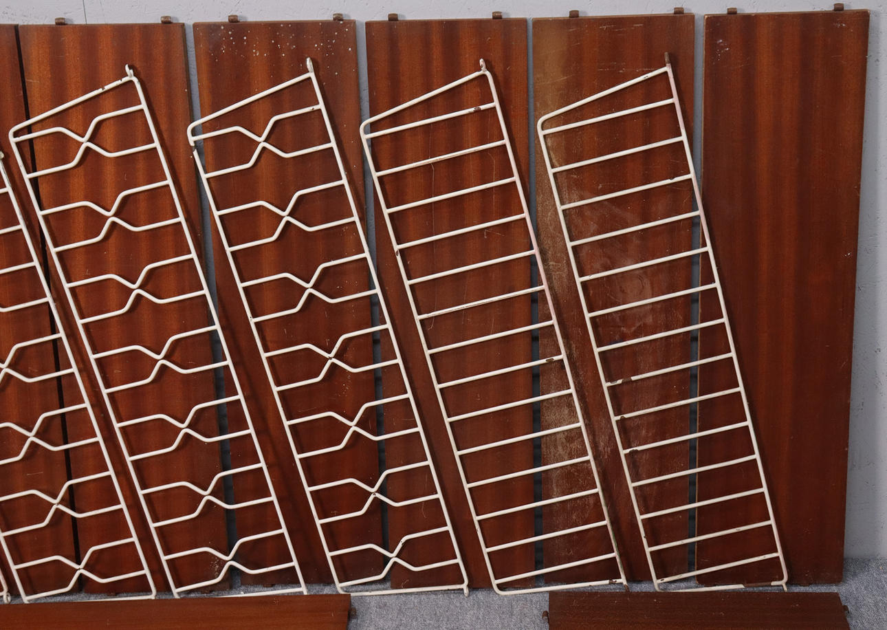 10 shelves, 78x20 cm. 2 shelves, 39x20 cm. 6 gables, height 77 cm.