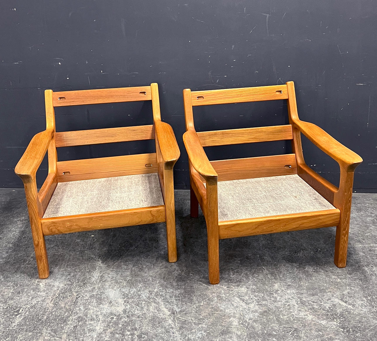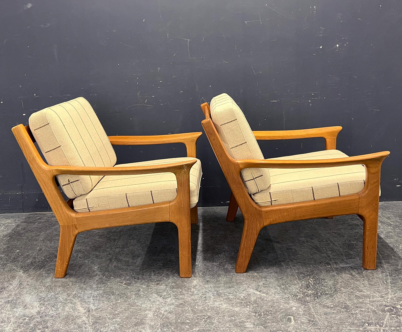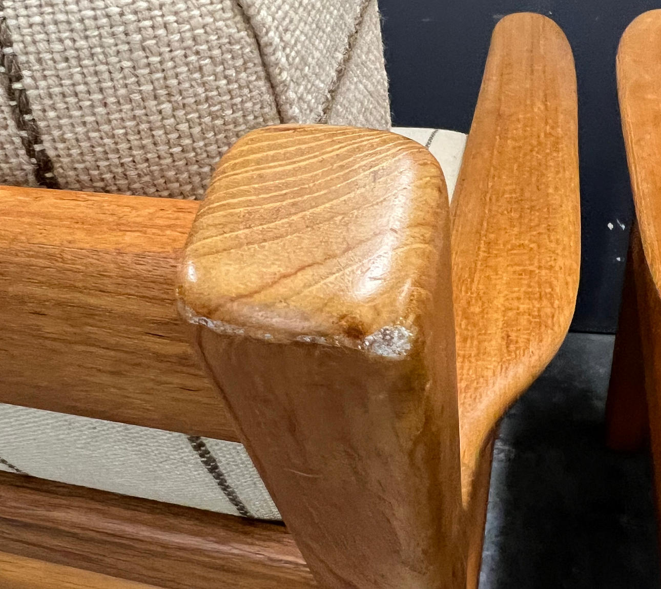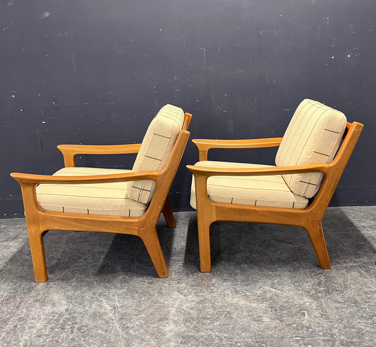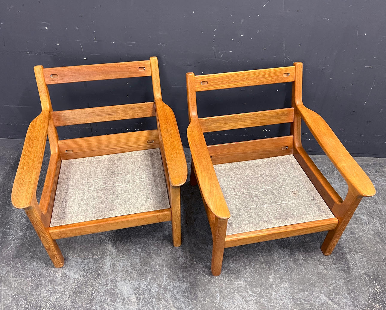 Solid teak frame, cushions with textile cover and spring padding. Removable covers