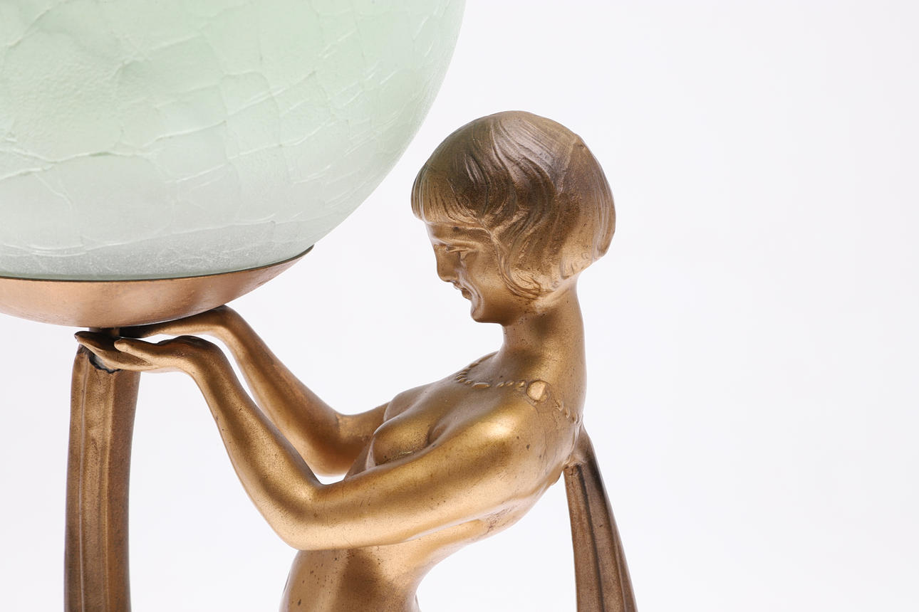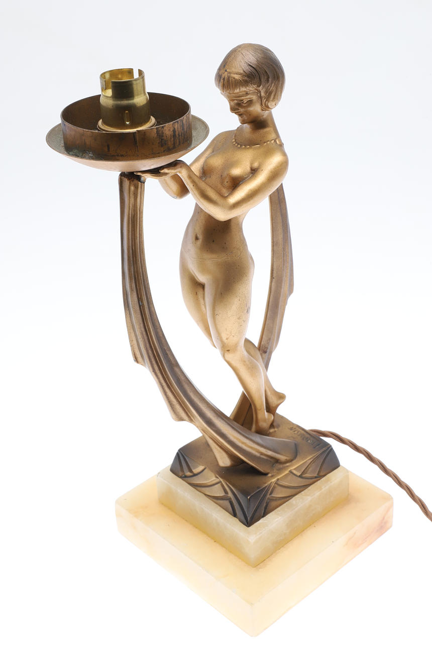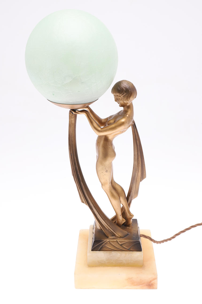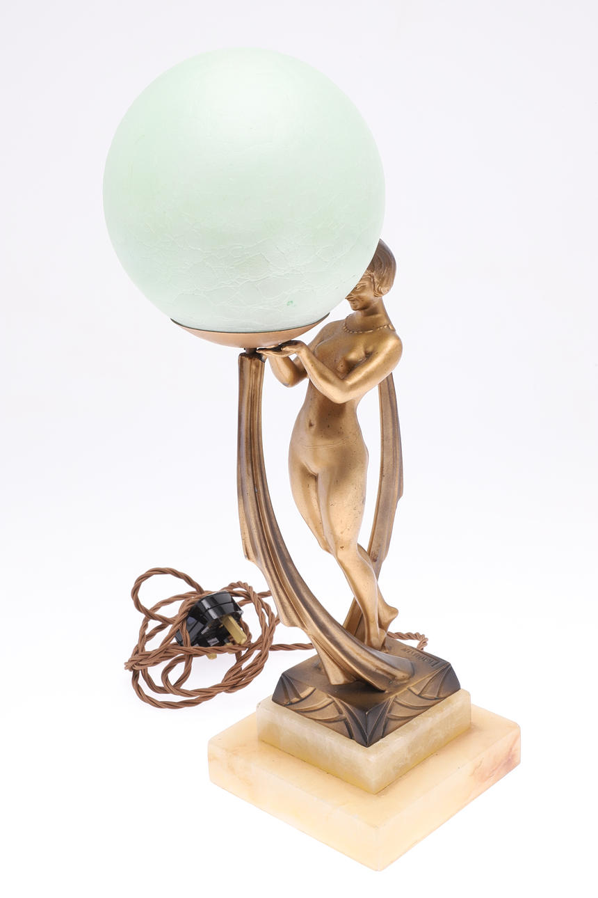 4971497. ART DECO FIGURAL TABLE LAMP & SHADE - LIMOUSIN.