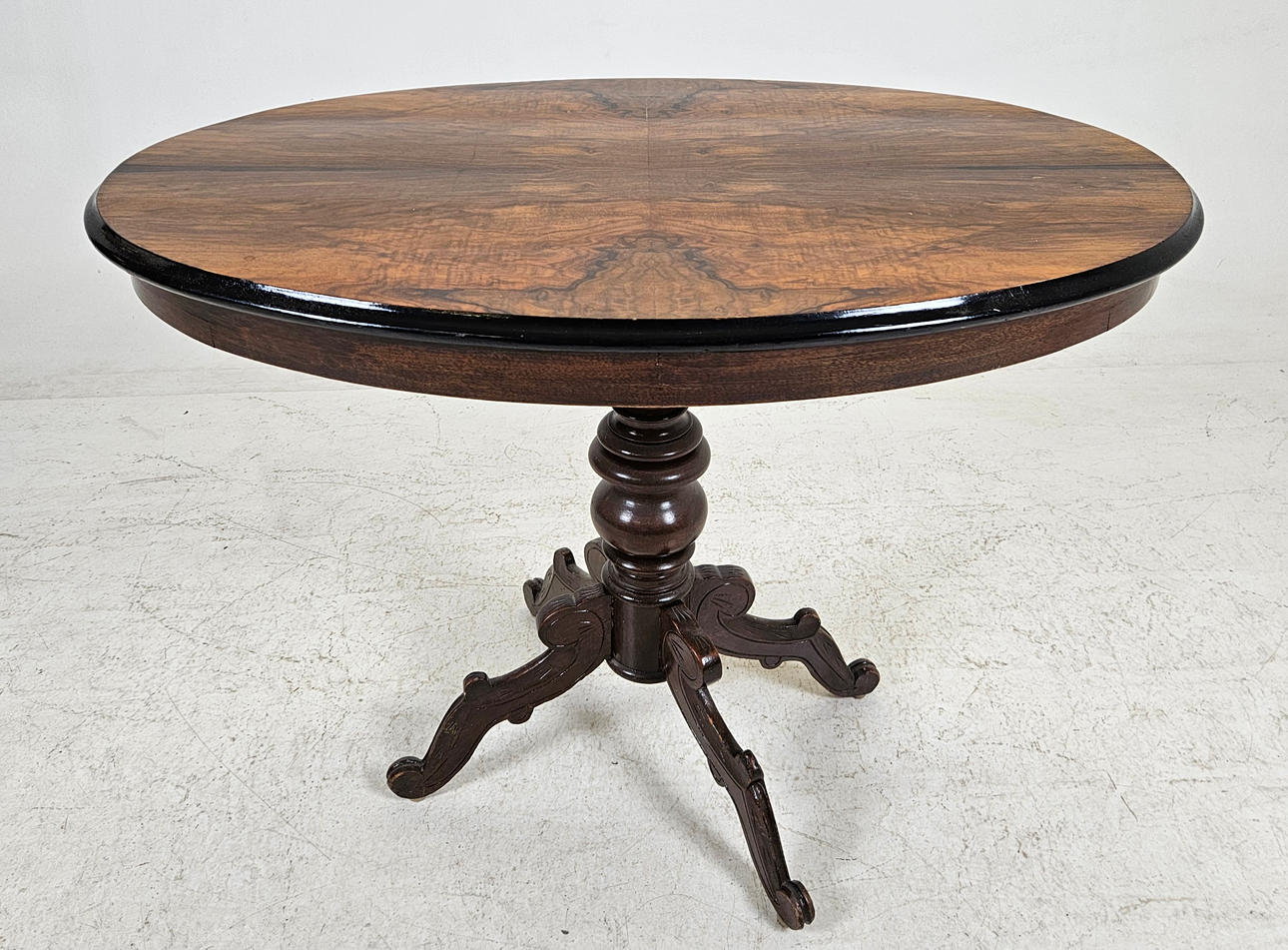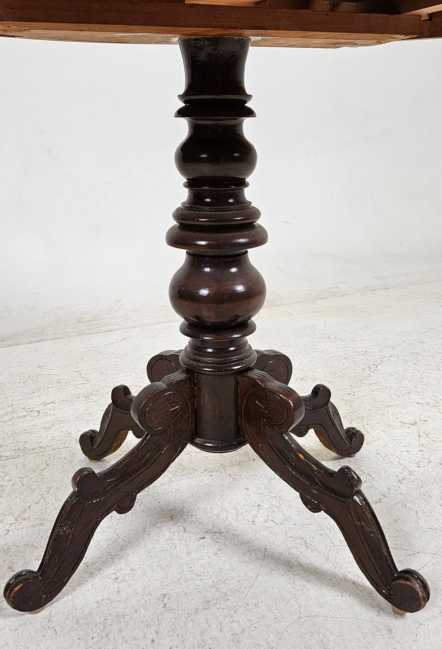 Usage and age-related wear. Sarg with damage, cracks, later painted foot.