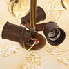 Usage and age-related wear. Brass with dark spots. Cup with cracks. Interior with rust. No functional warranty is provided.