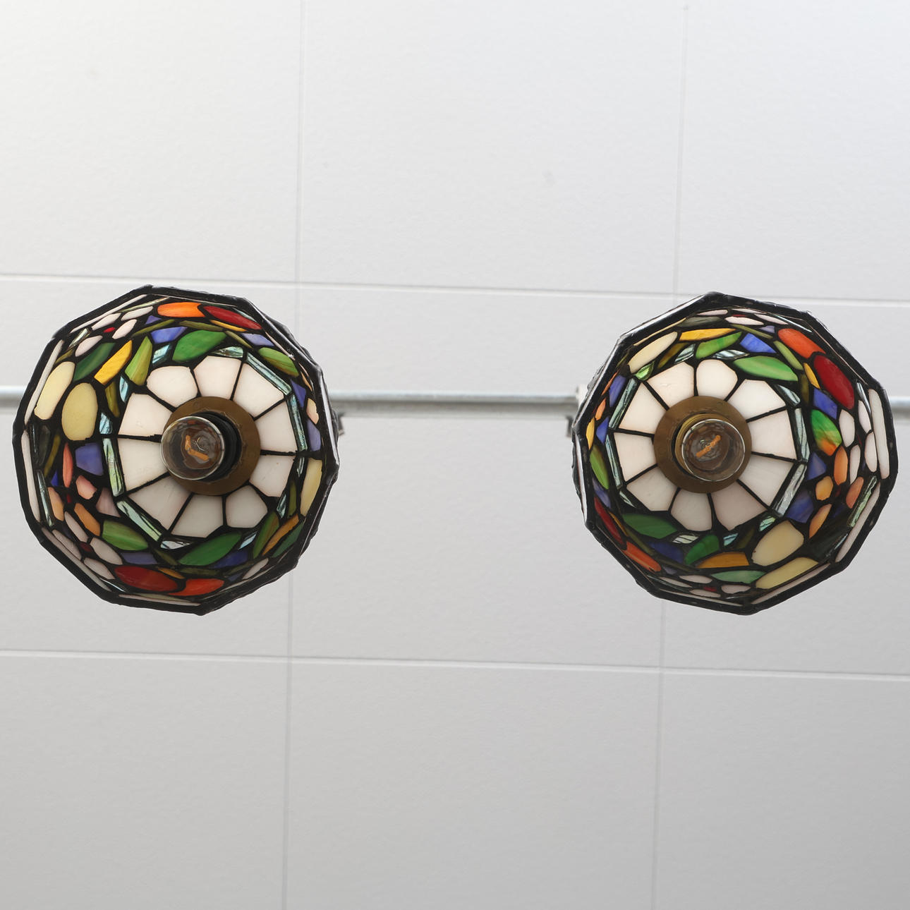 WINDOW LAMPS, a pair, Tiffany style, contemporary.