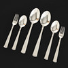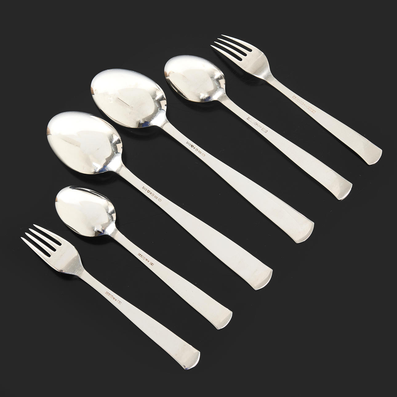 Consists of 2 tablespoons 18cm 2 sandwich forks 13,5cm Tea spoon 15cm Coffee spoon 13,5cm Total weight 162g.