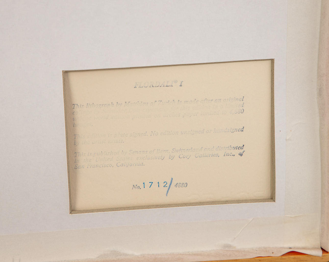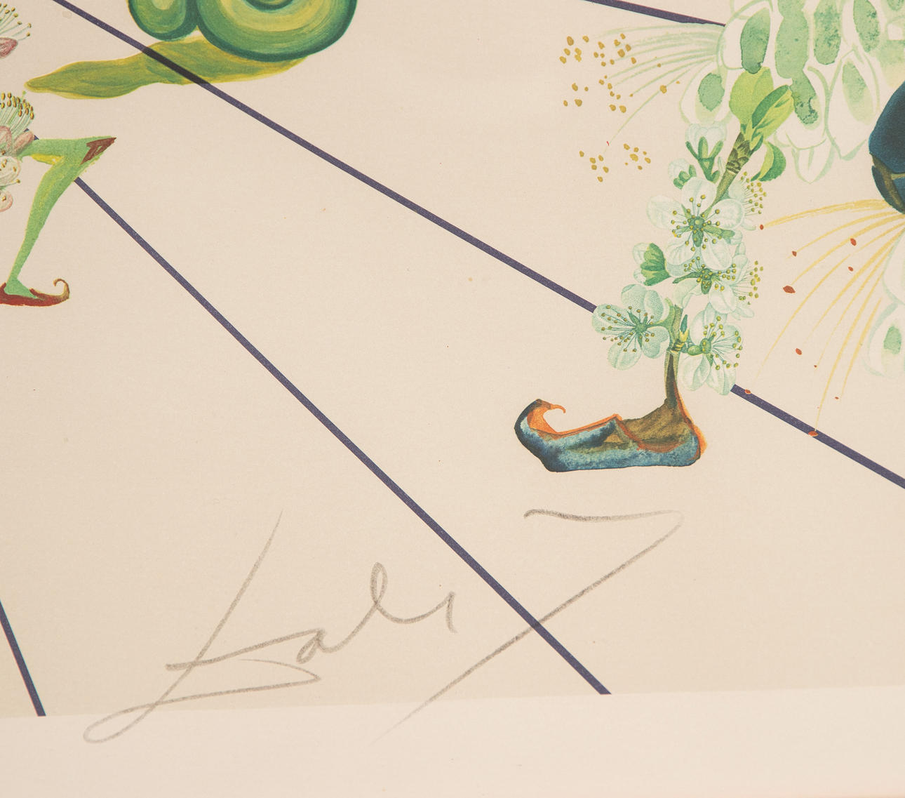 Salvador Dali (1904-1989), Flordali I, color lithograph based on an original collage, created by Dali especially for this edition, 1981, signed in stone, with stamped text on the back: numbered, titled and inscribed here, copy 1712/4880 on Arches, printed by Matthieu, ca. 65 x 97 cm, framed behind glass ca. 84 x 115 cm