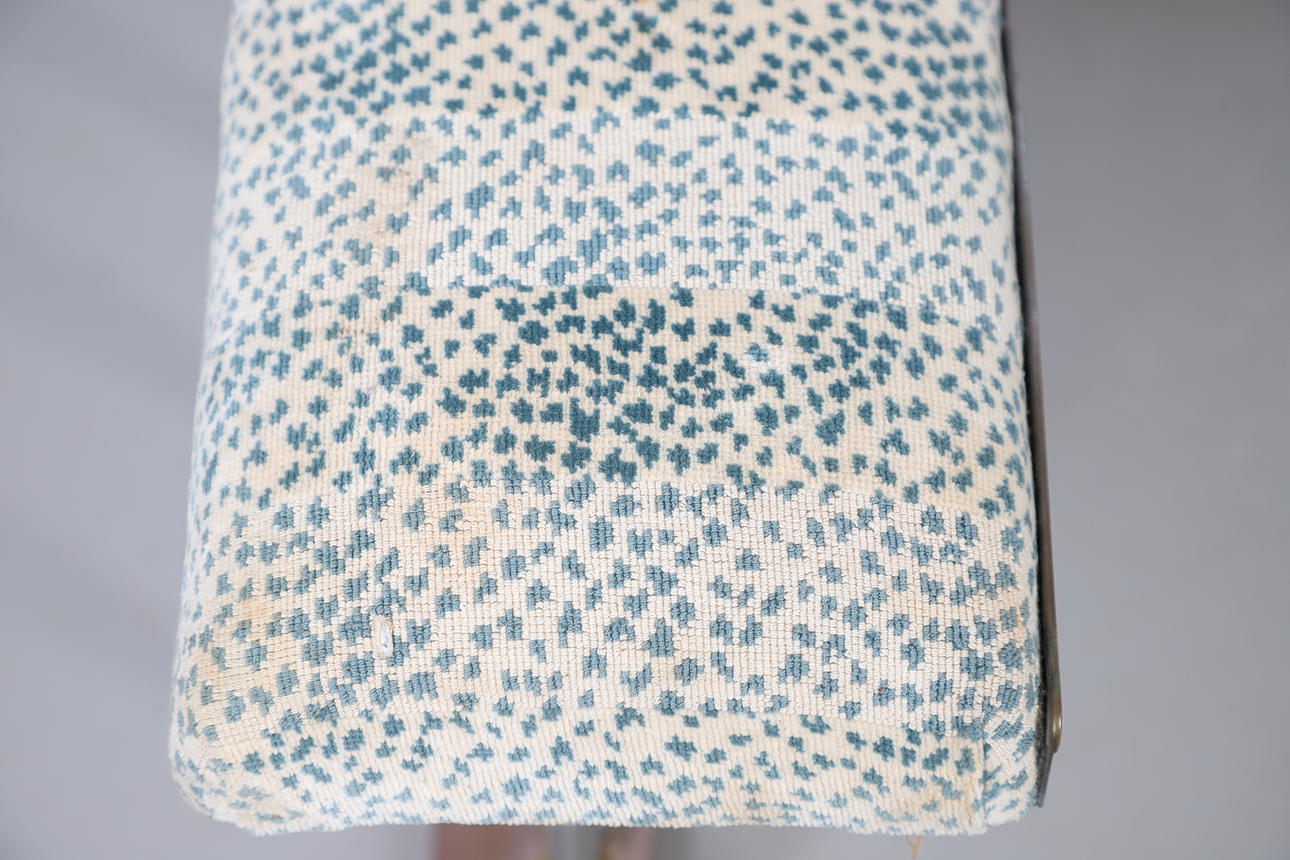 Wear to the paint frame. Marks, staining, and discolouration to the upholstery. Discolouration and rust to the stud trimming. General marks, scratches, discolouration and wear. Other imperfections. See online images.