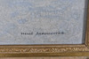 Winter landscape with residential buildings. Signed