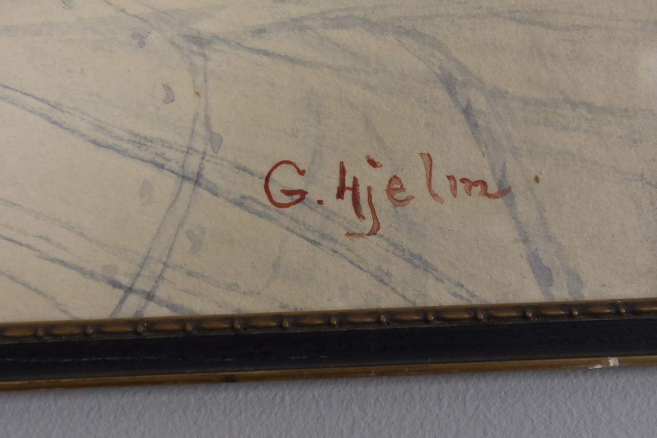 Hamra mountain. Signed G. Hjelm and dated 1944. 24.5x35 cm. Overall dimensions 27x37 cm.
