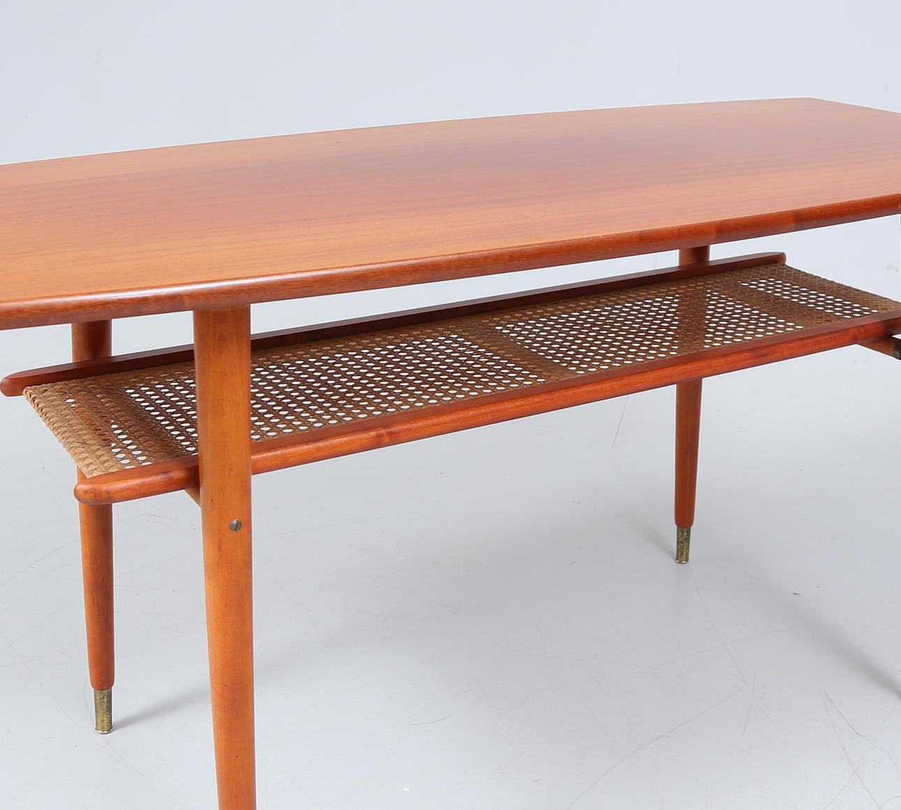 Shelf with rattan, brass feet.