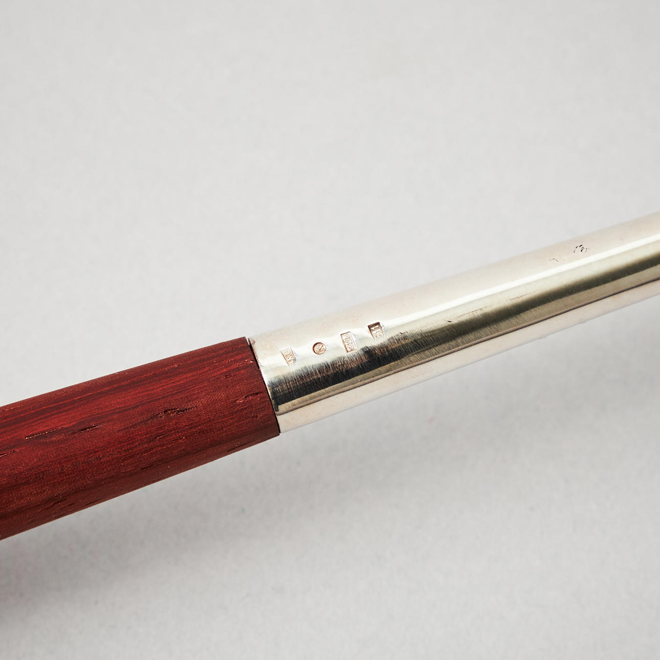Beehive-shaped, with a teak handle. Length 44 cm, total weight 102 grams.