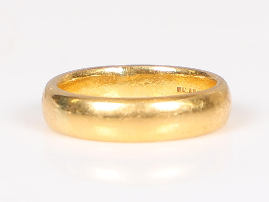 Of plain form, ring size K 1/2, 7.3g.