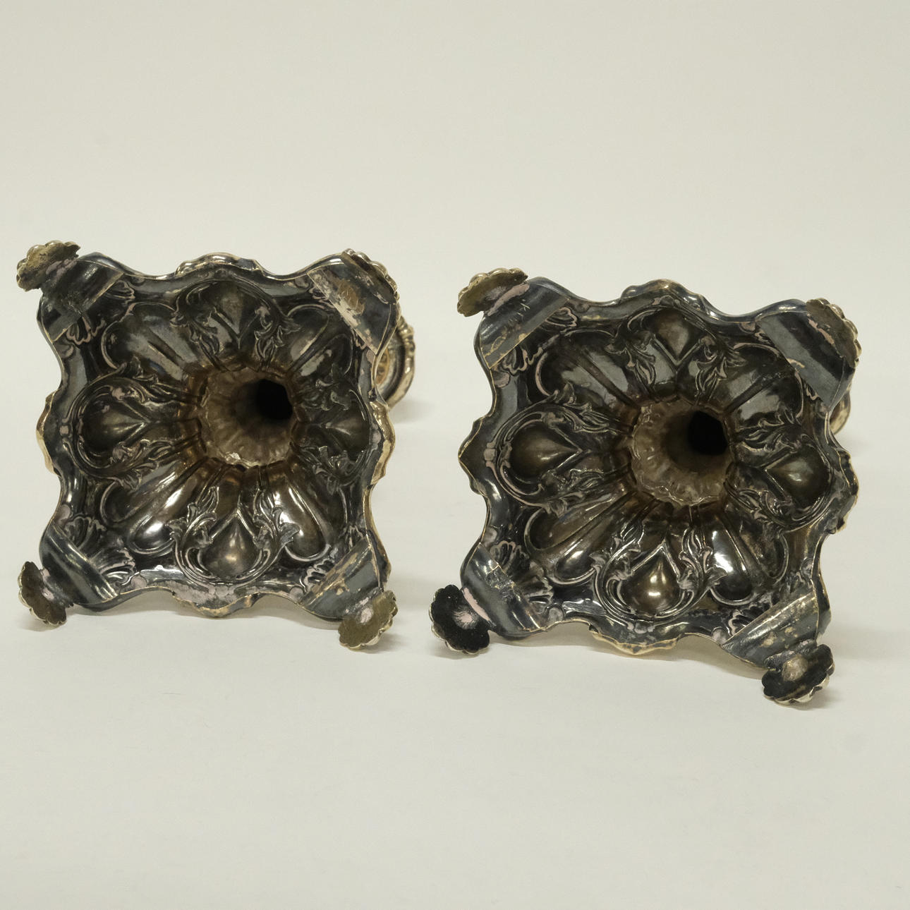 A PAIR OF CANDLESTICKS, ROCOCO STYLE, NICKEL SILVER.