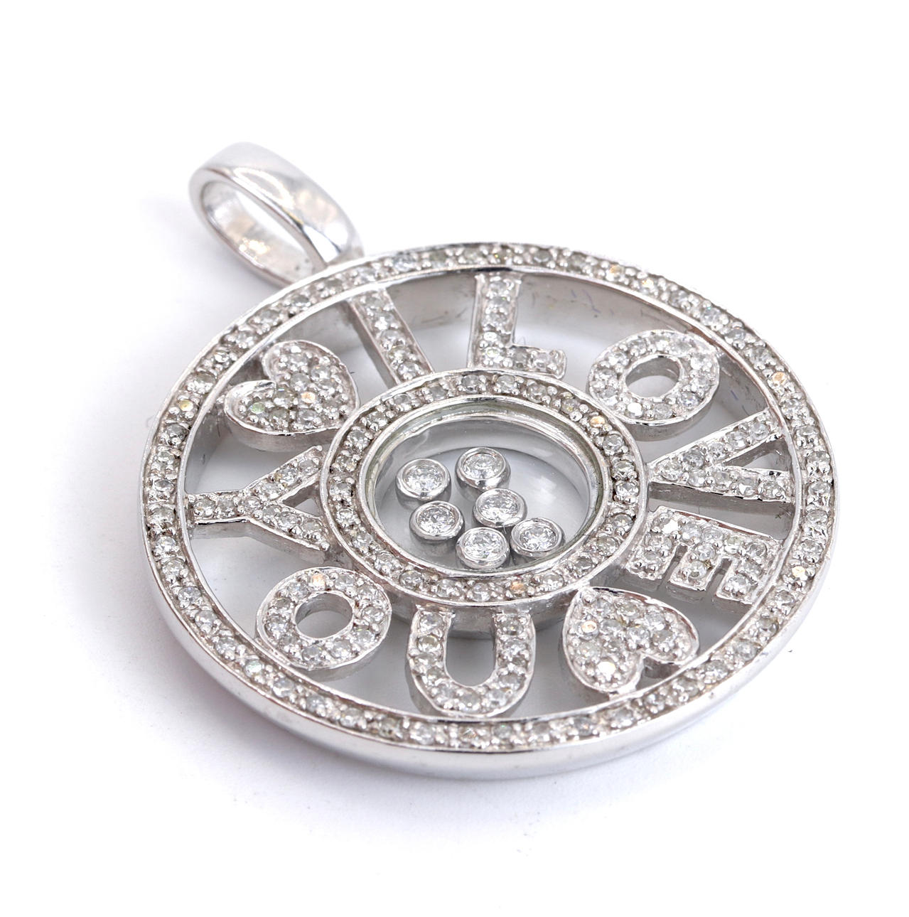 A 9ct white gold round 'I LOVE YOU' pendant set wth diamonds and loose diamonds inside.