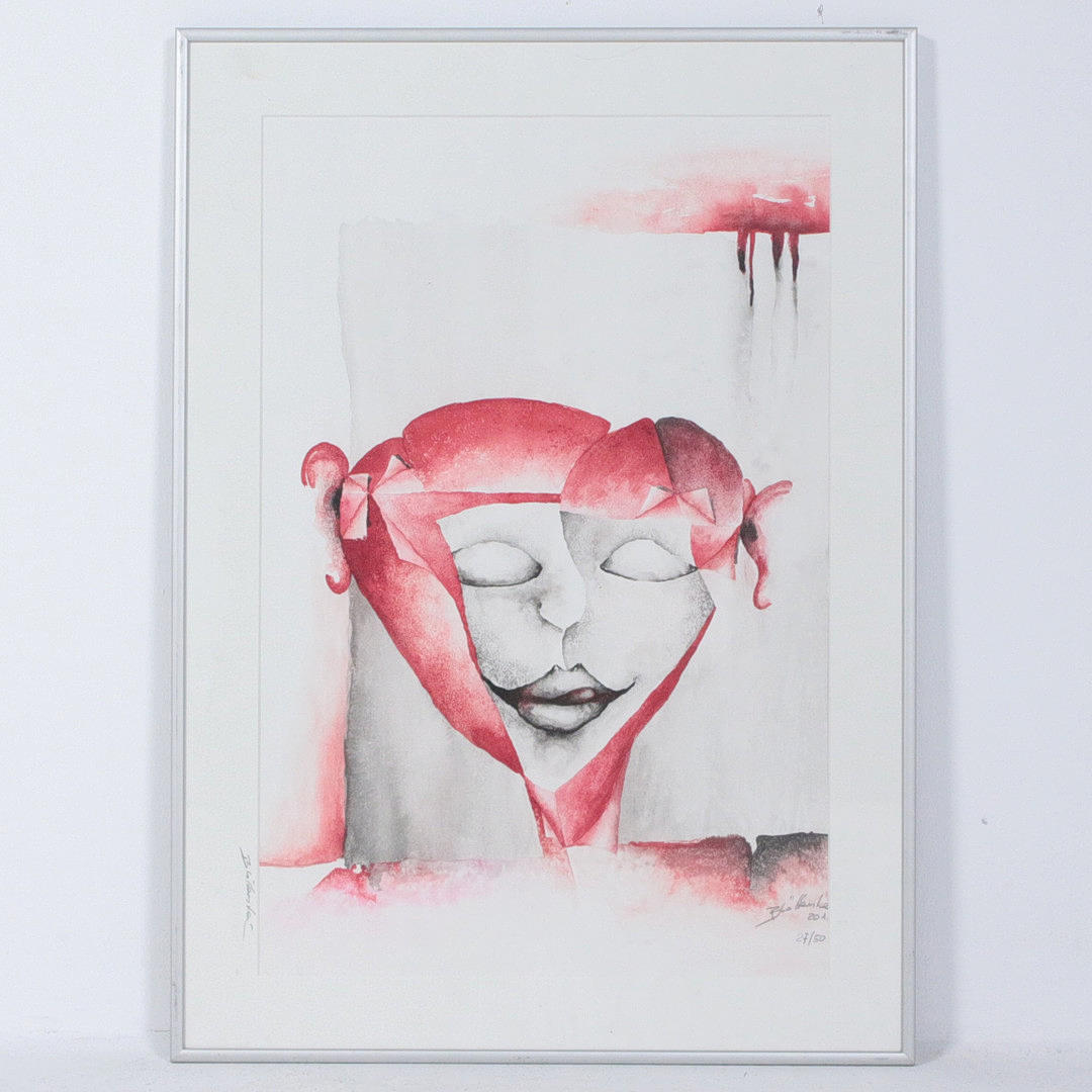 Blätterstein, 'Red Portrait', 2012, lithograph, limited, Ed. 27/50, signed, framed, Picture size: 58 x 39 cm, Frame size: 71 x 51 cm.