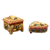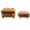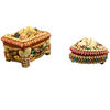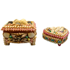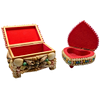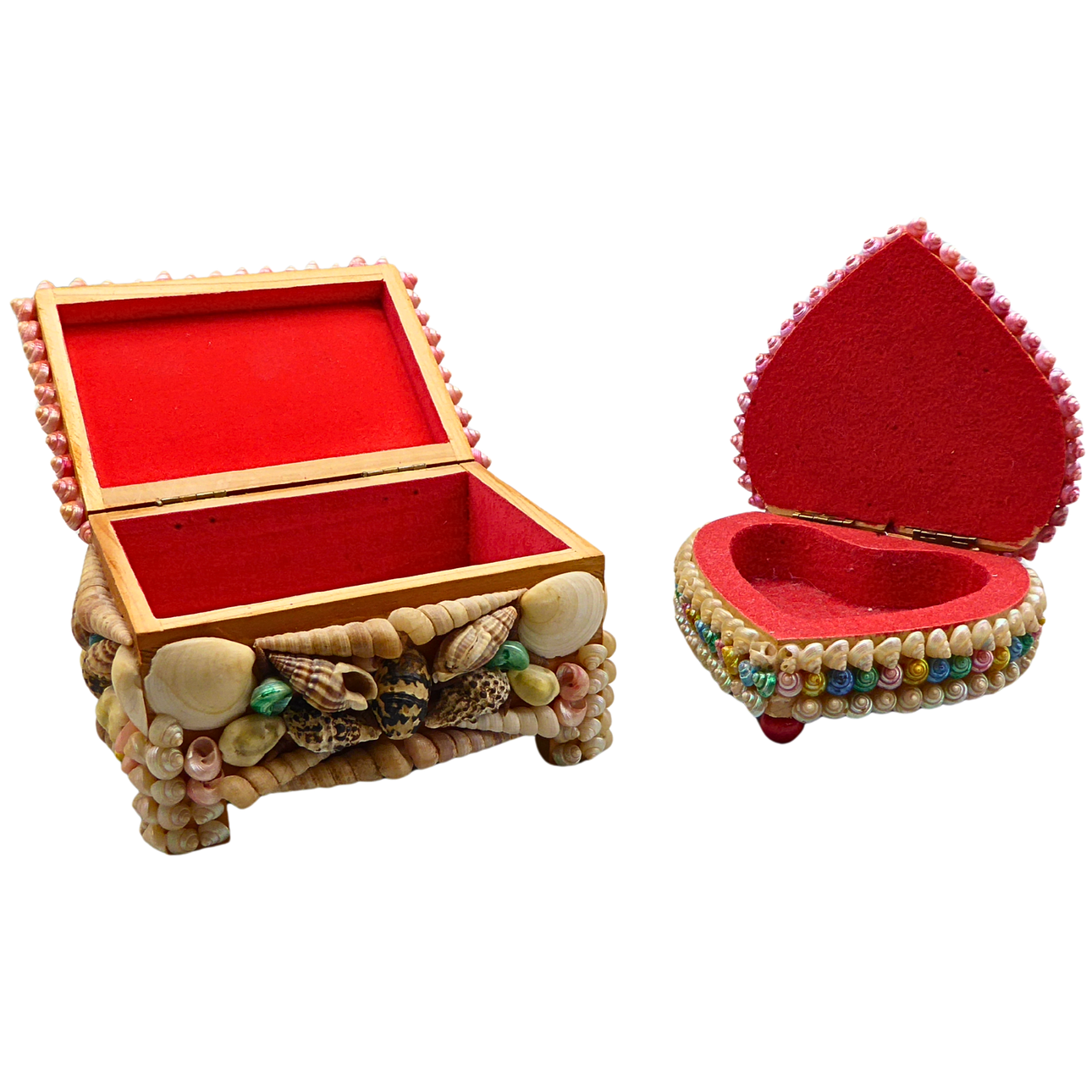Two caskets with a variety of sea shells and snail shells in rectangular and heart-shaped shapes.