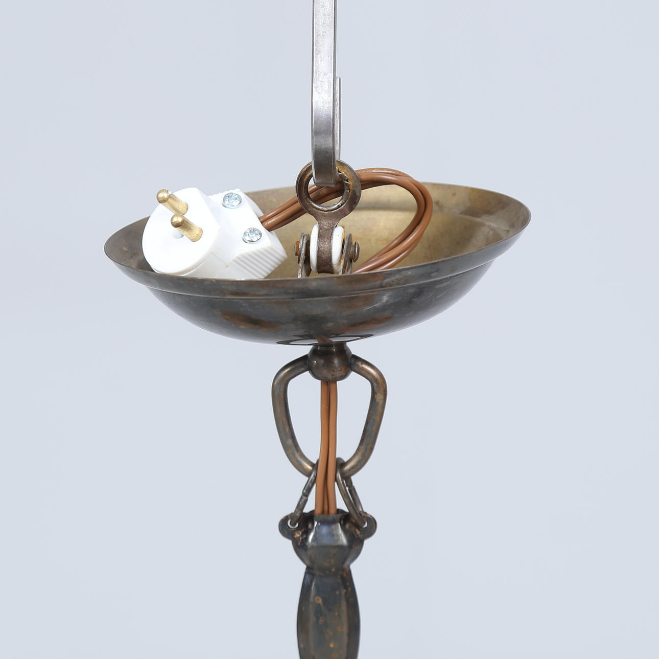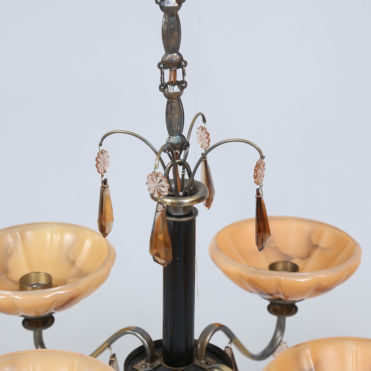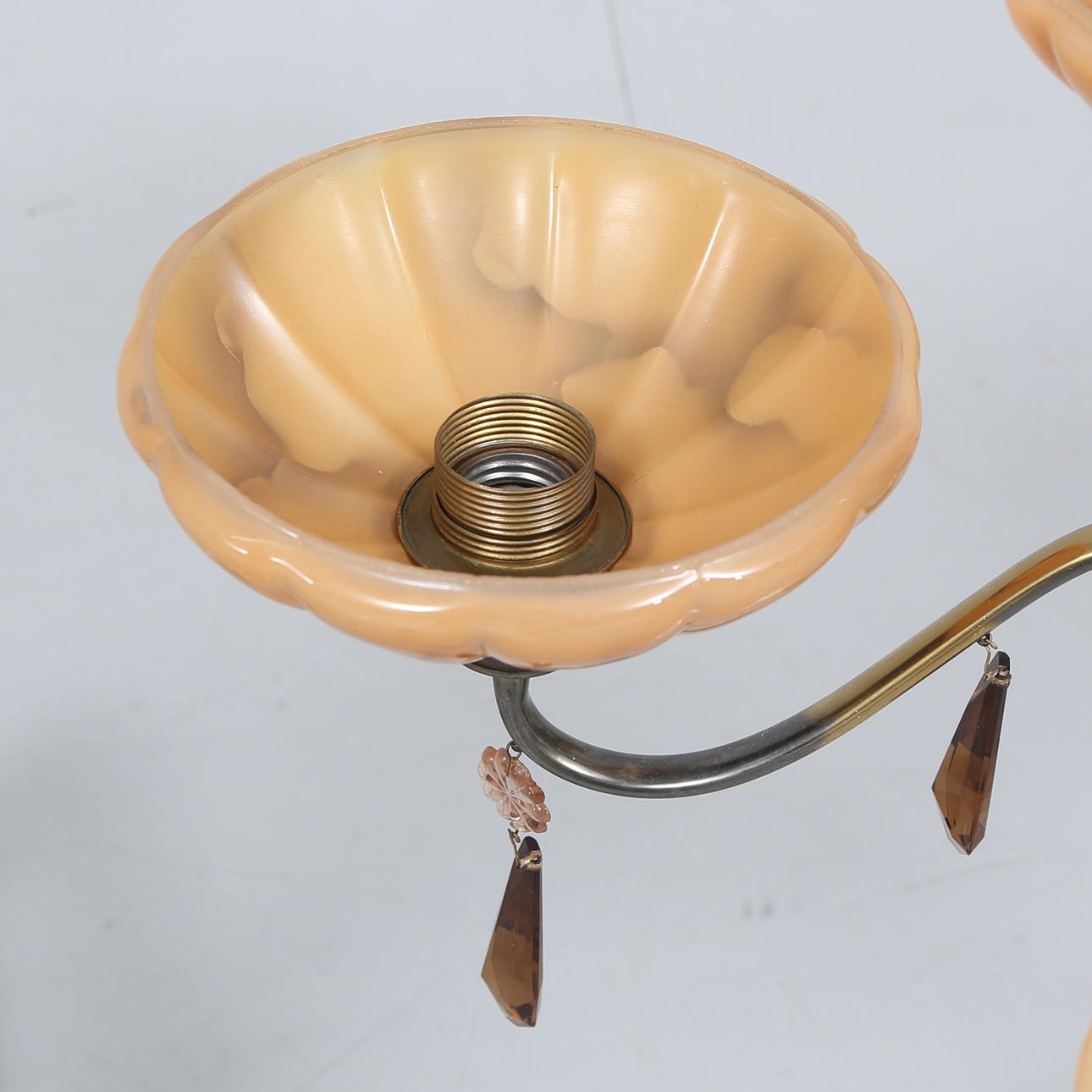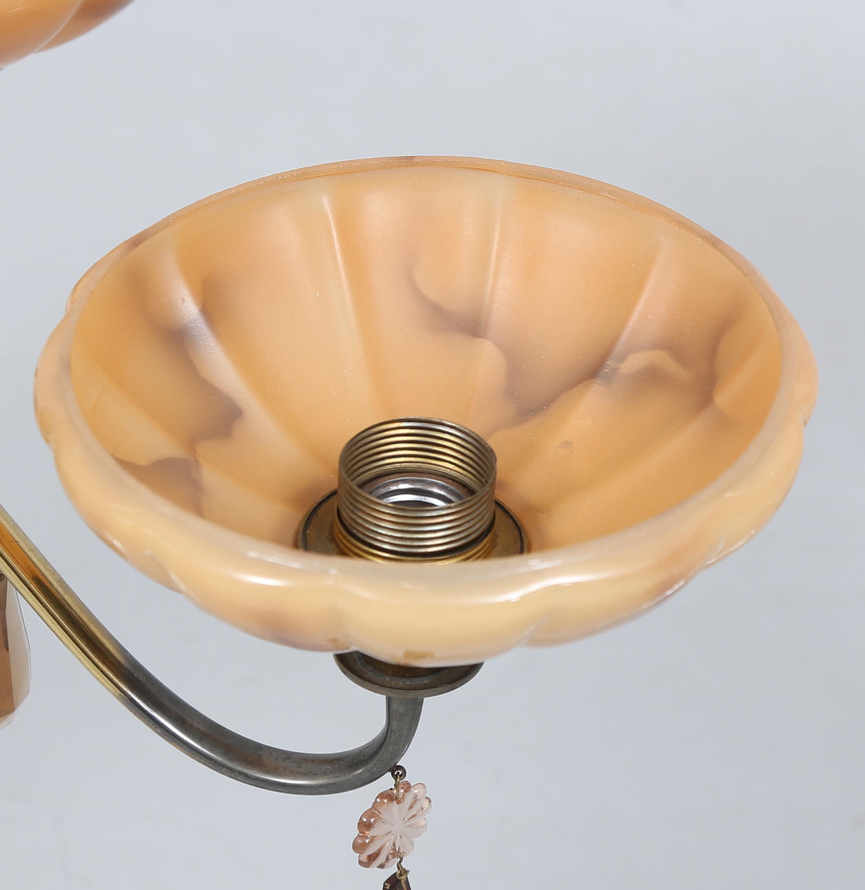 4973983. A 1930's ceiling lamp, prisms and glass cups.