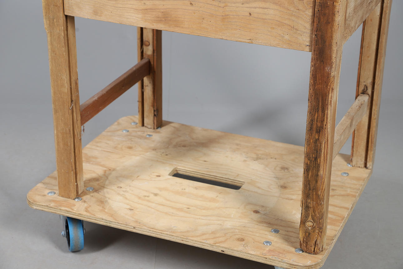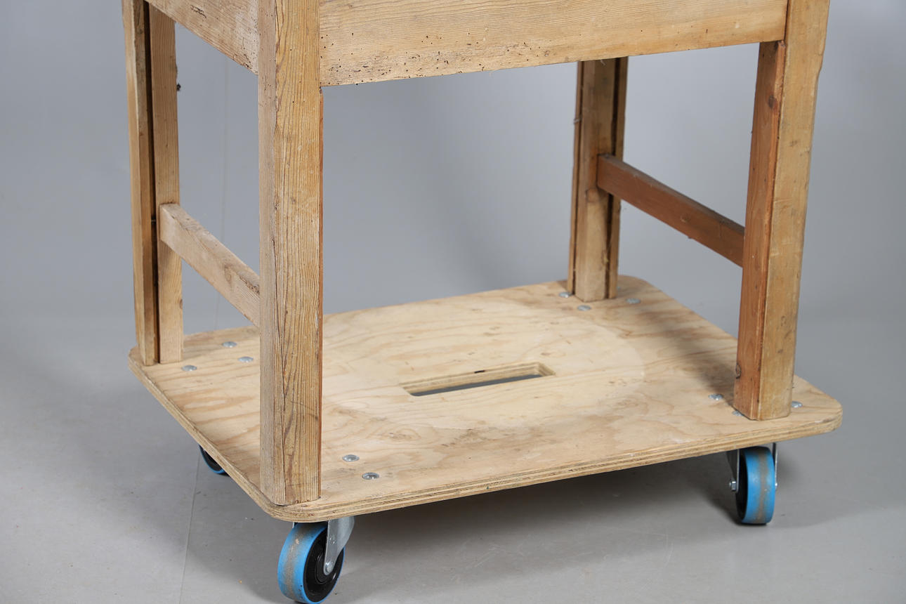 A STRIPPED PINE SCHOOL DESK.