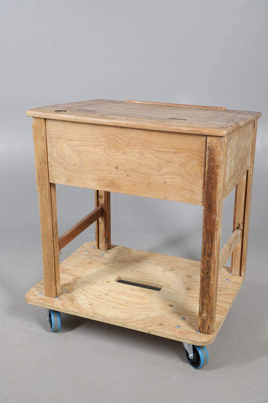 4974150. A STRIPPED PINE SCHOOL DESK.