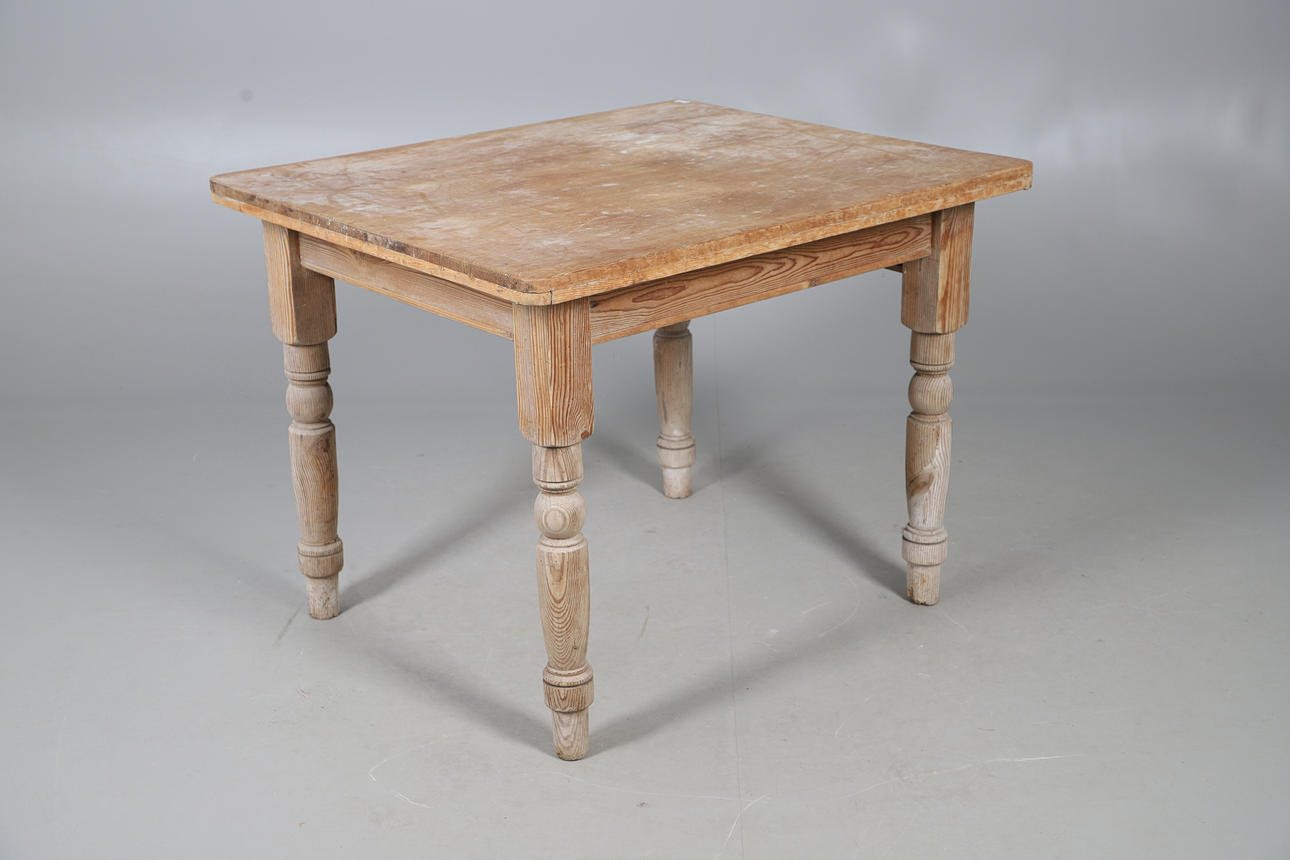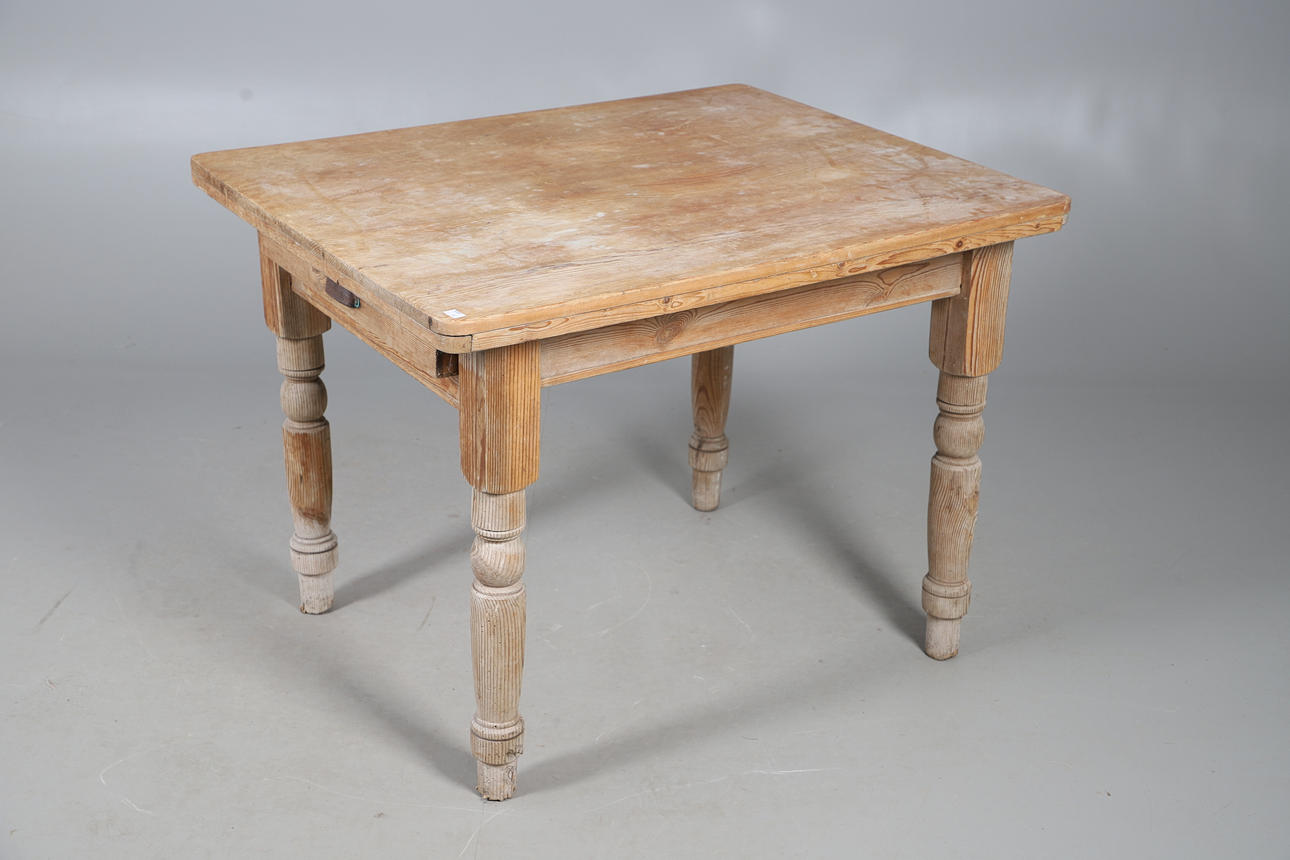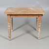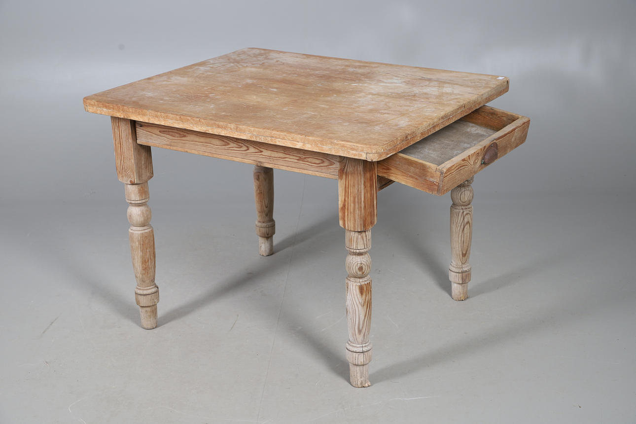 With single frieze drawer, raised on turned legs, W81 H71 x D97cm.