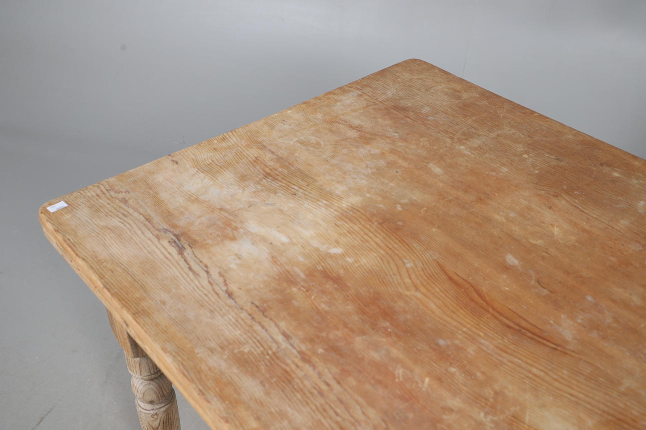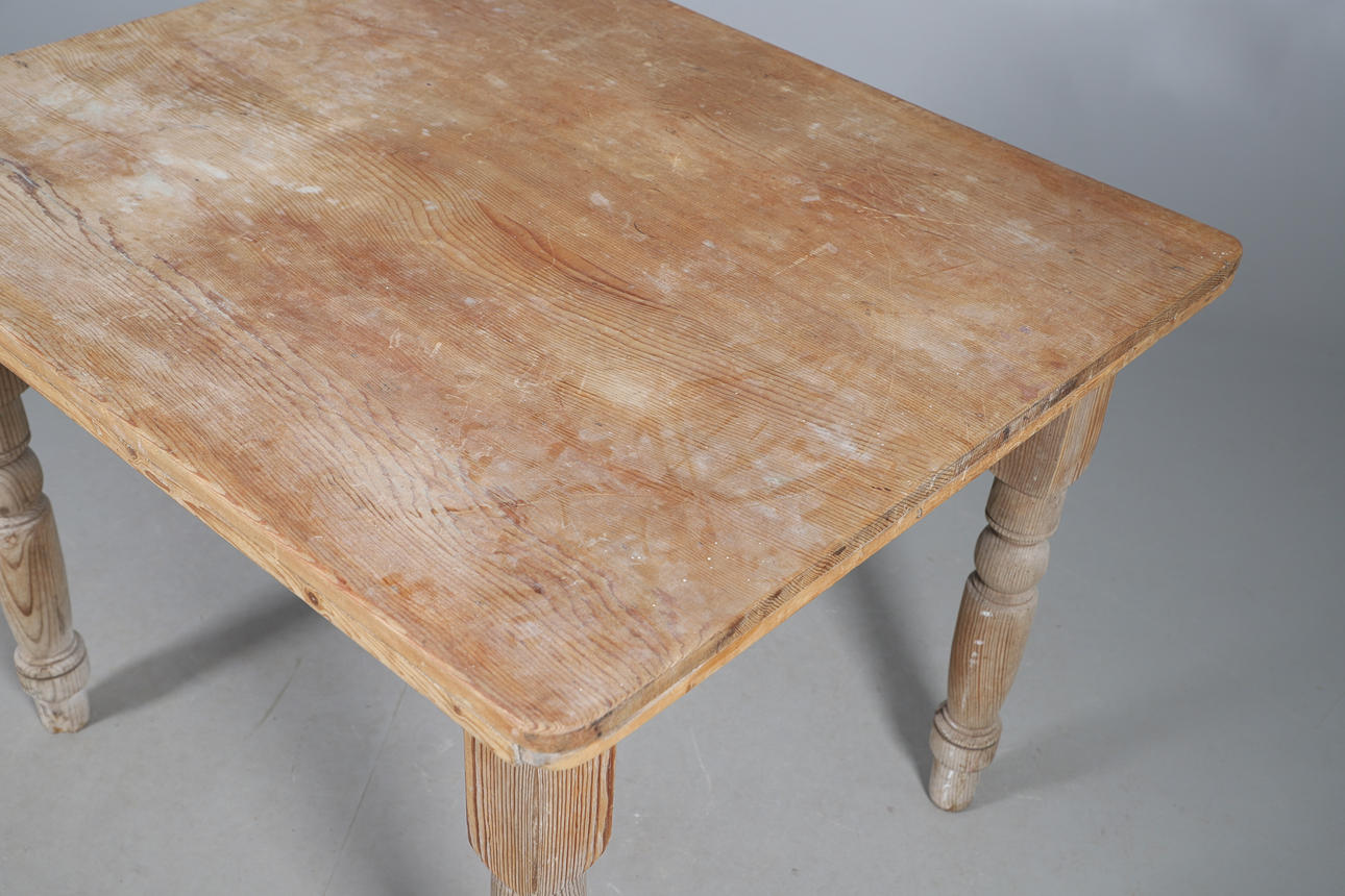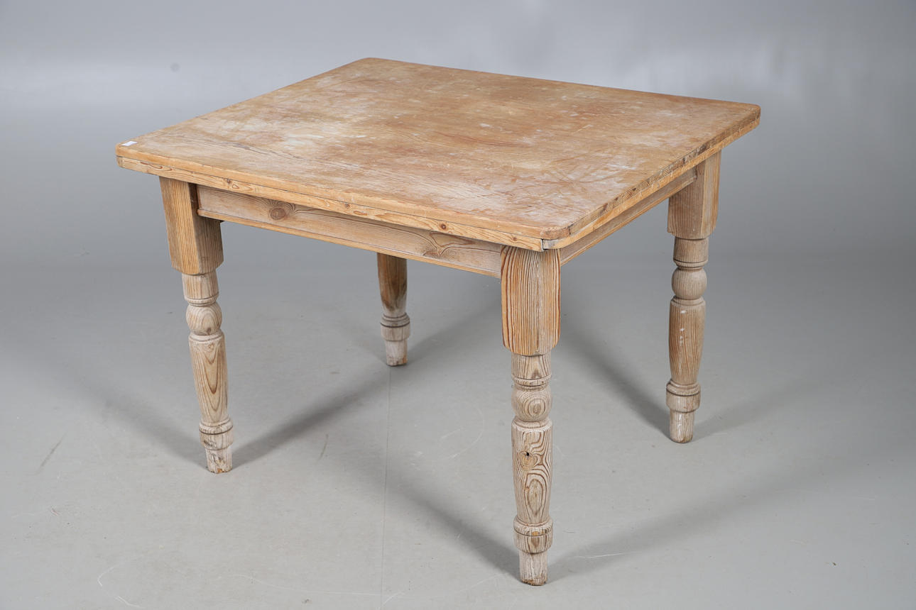 With single frieze drawer, raised on turned legs, W81 H71 x D97cm.