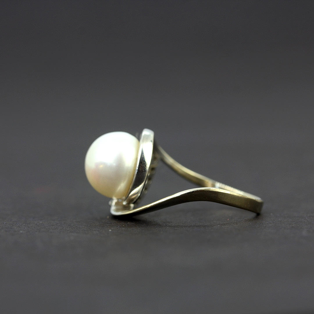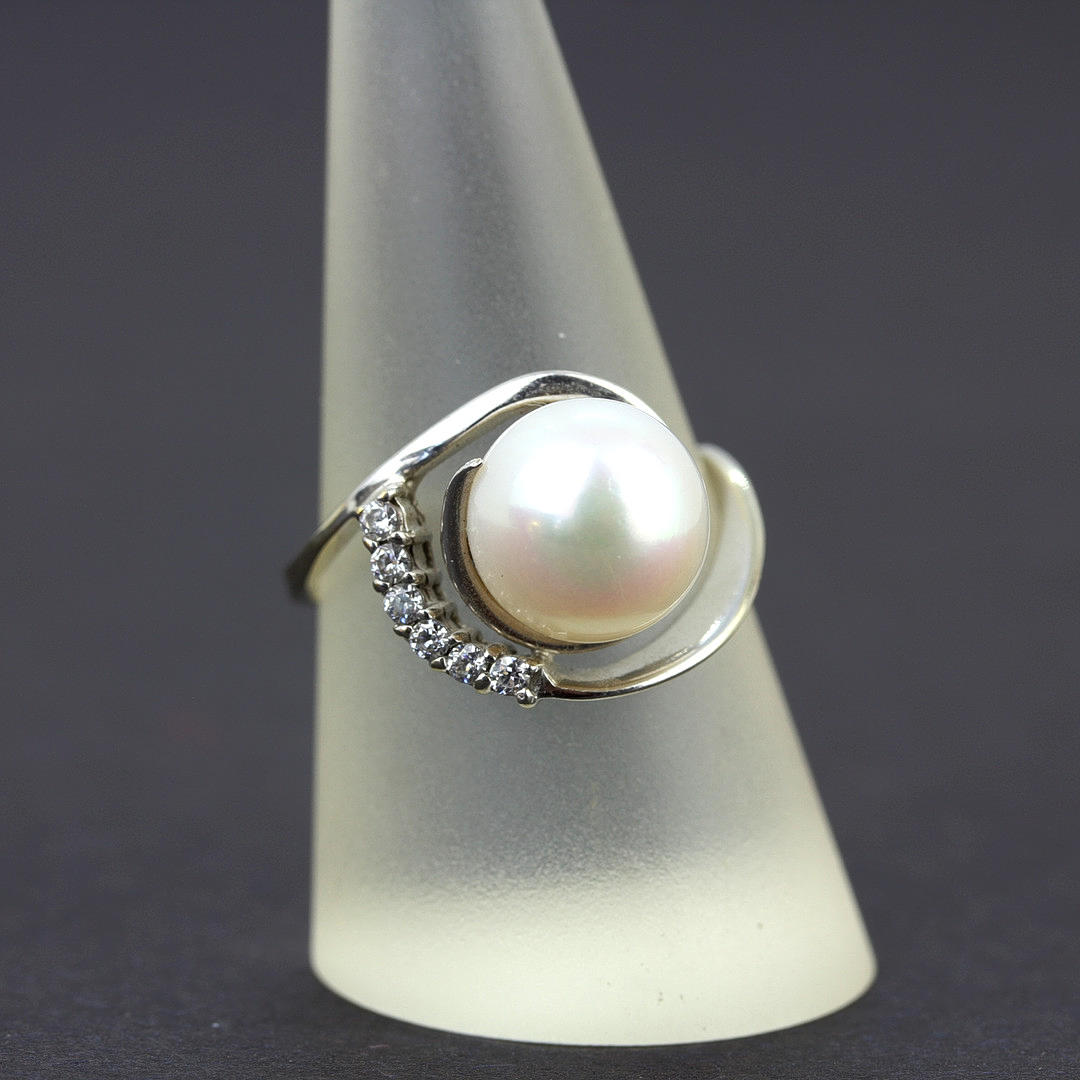 4974692. 14CT PEARL AND DIAMOND RING.