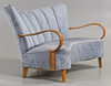 Frame in birch, sprung seat, textile upholstery. Swivel model.
