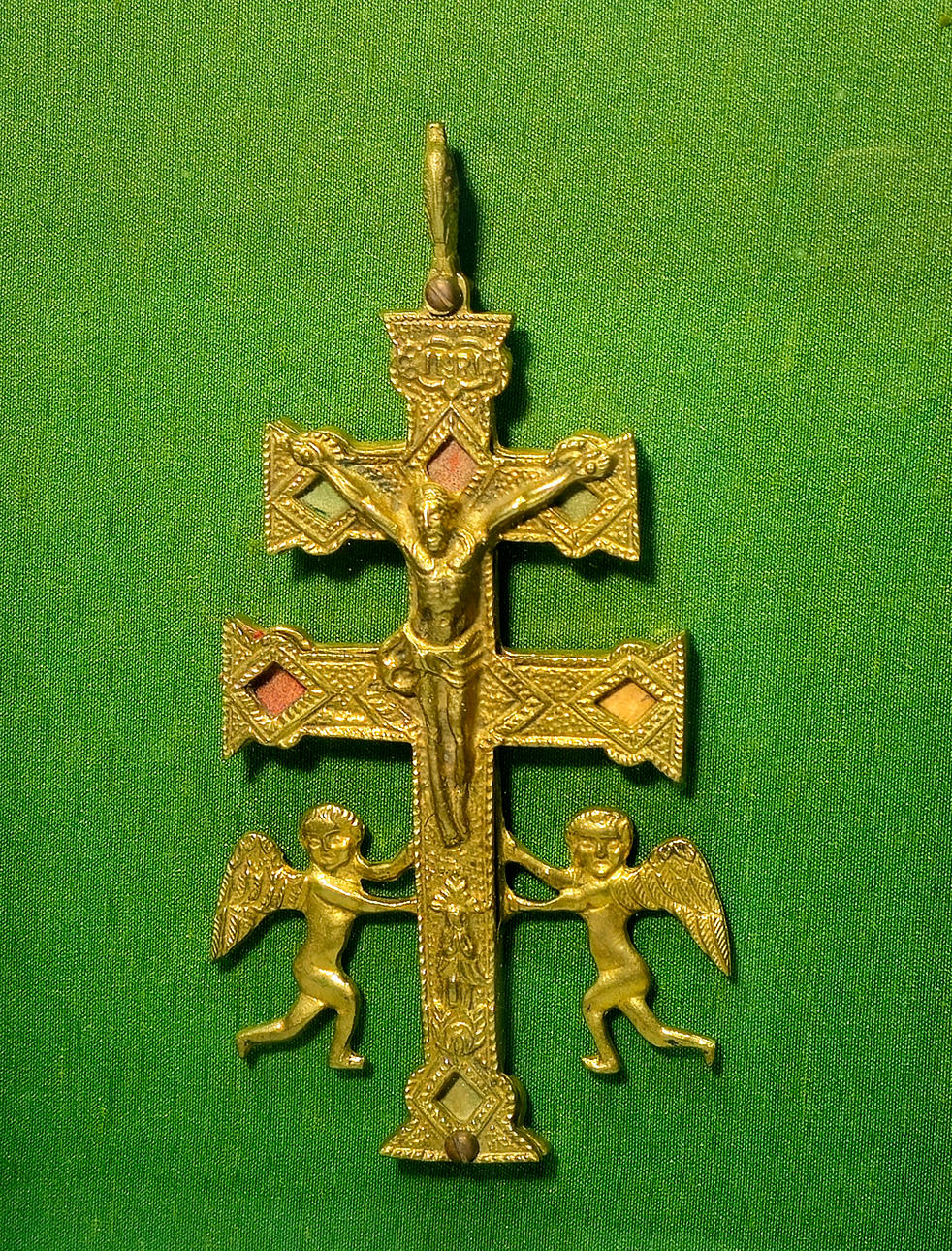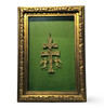Old Caravaca Cross in gilded bronze. Framed.