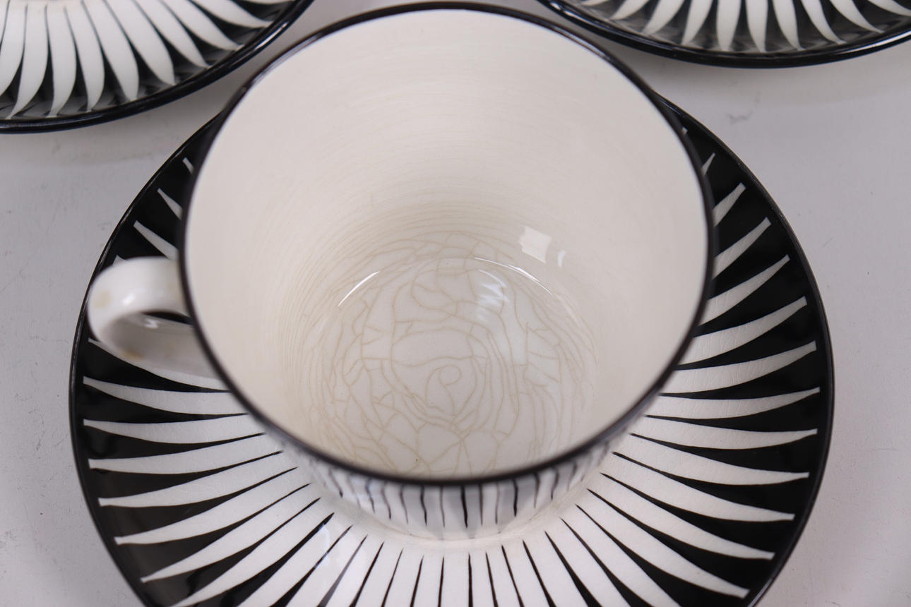 EUGEN TROST. “Zebra”, tea cups, Upsala-Ekeby/Gefle, designed 1955, 8 pieces.