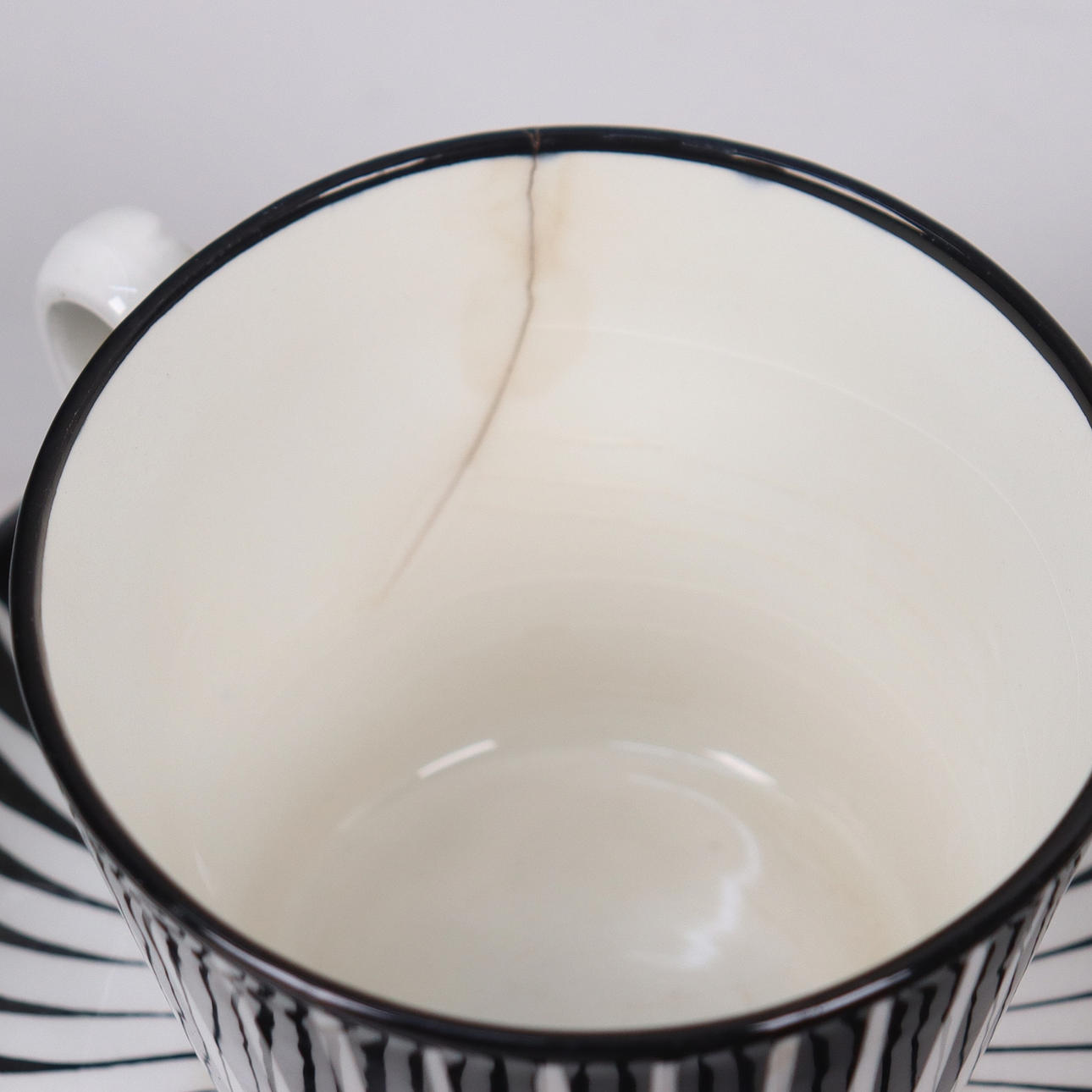 Usage and age-related wear. A cup has a crack.