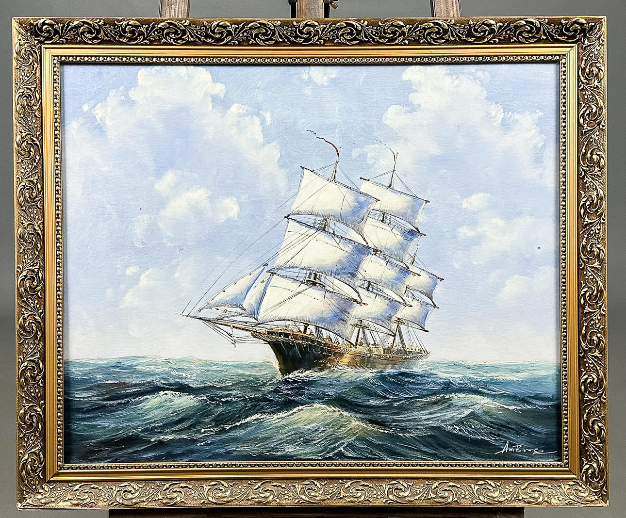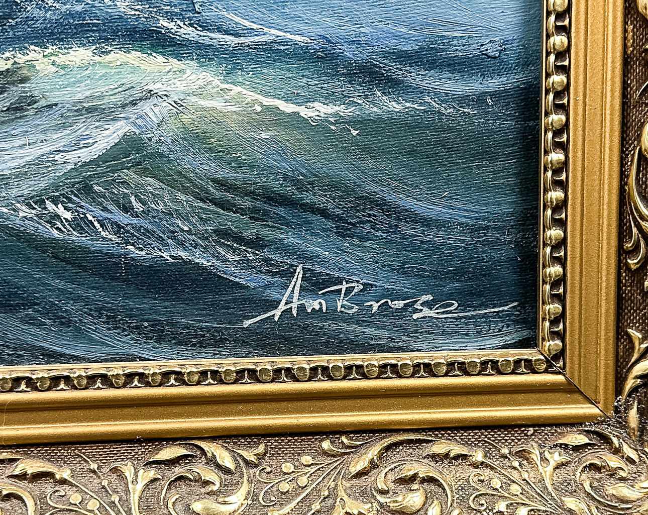 4975159. JOHN AMBROSE. Oil on canvas, Ship motif, Signed.