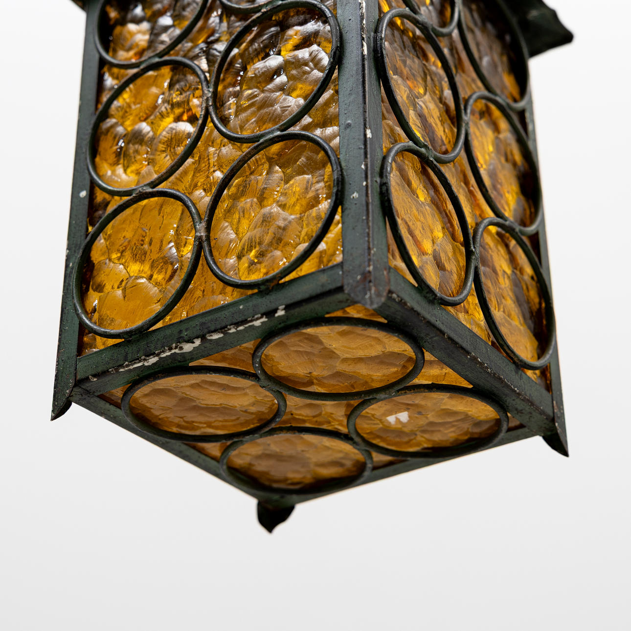 A 20th-century patinated white metal ceiling lantern.