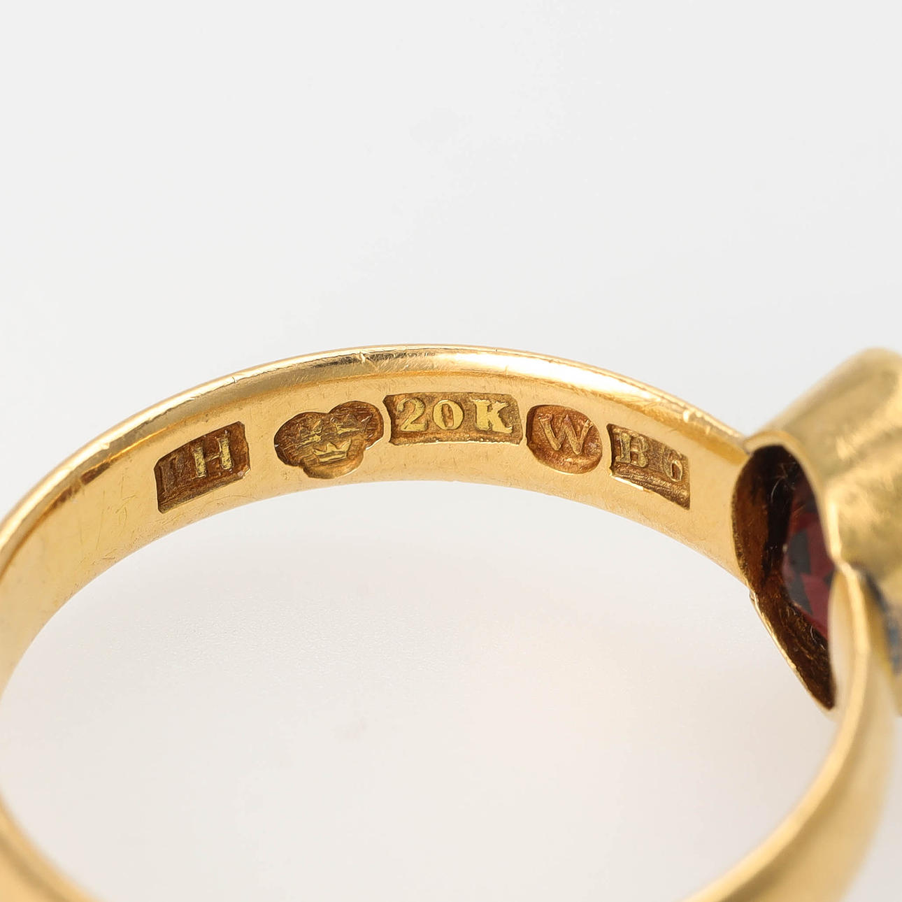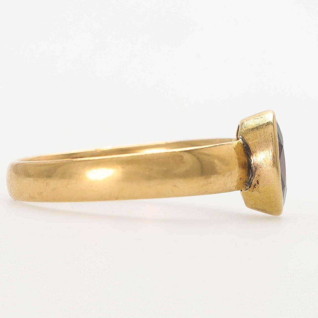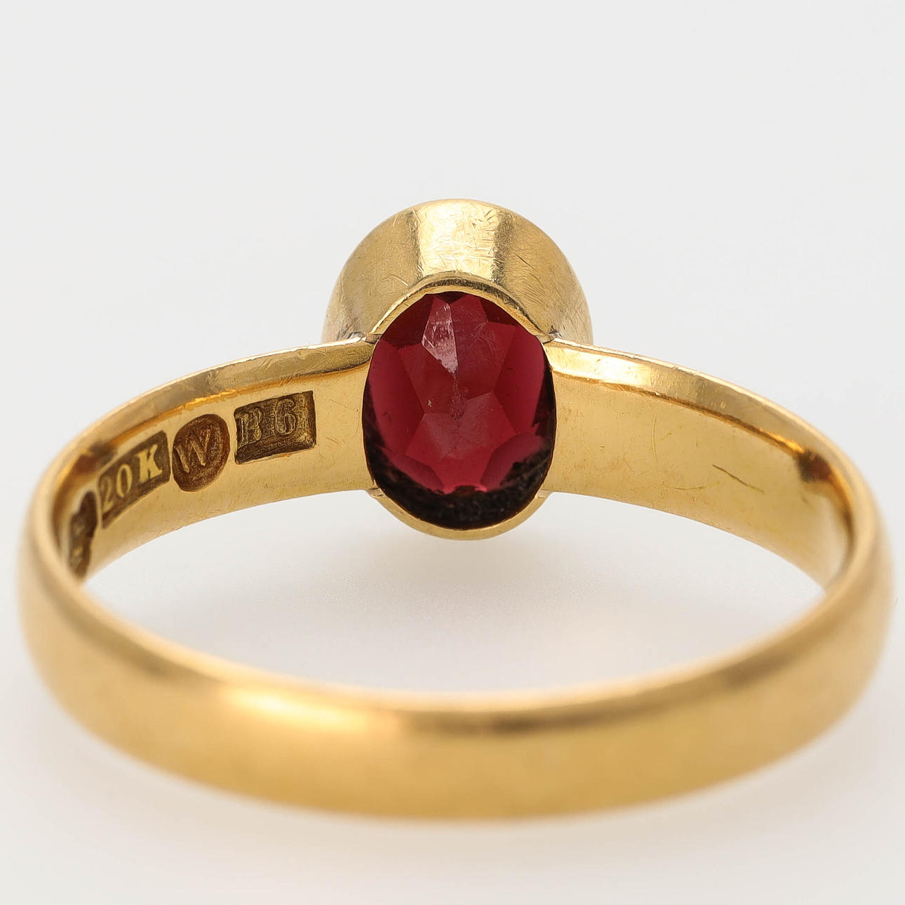 Oval cut grenade, 8 x 6 mm. Ring size 18,5/58. Weight 4.3 grams.