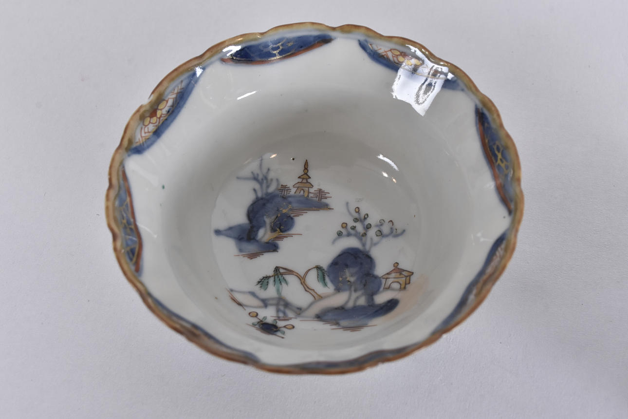 decor of flowers, landscapes, etc. in Imari colors, dia 10, h 4.5 cm.