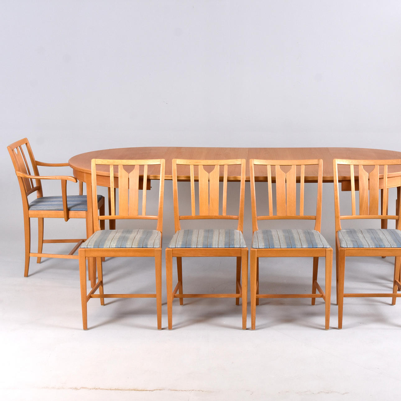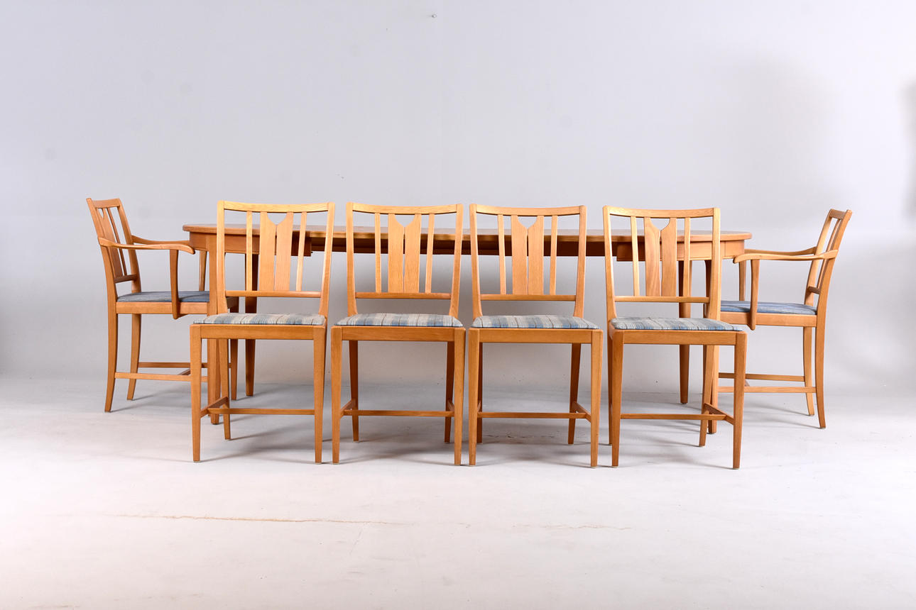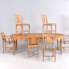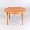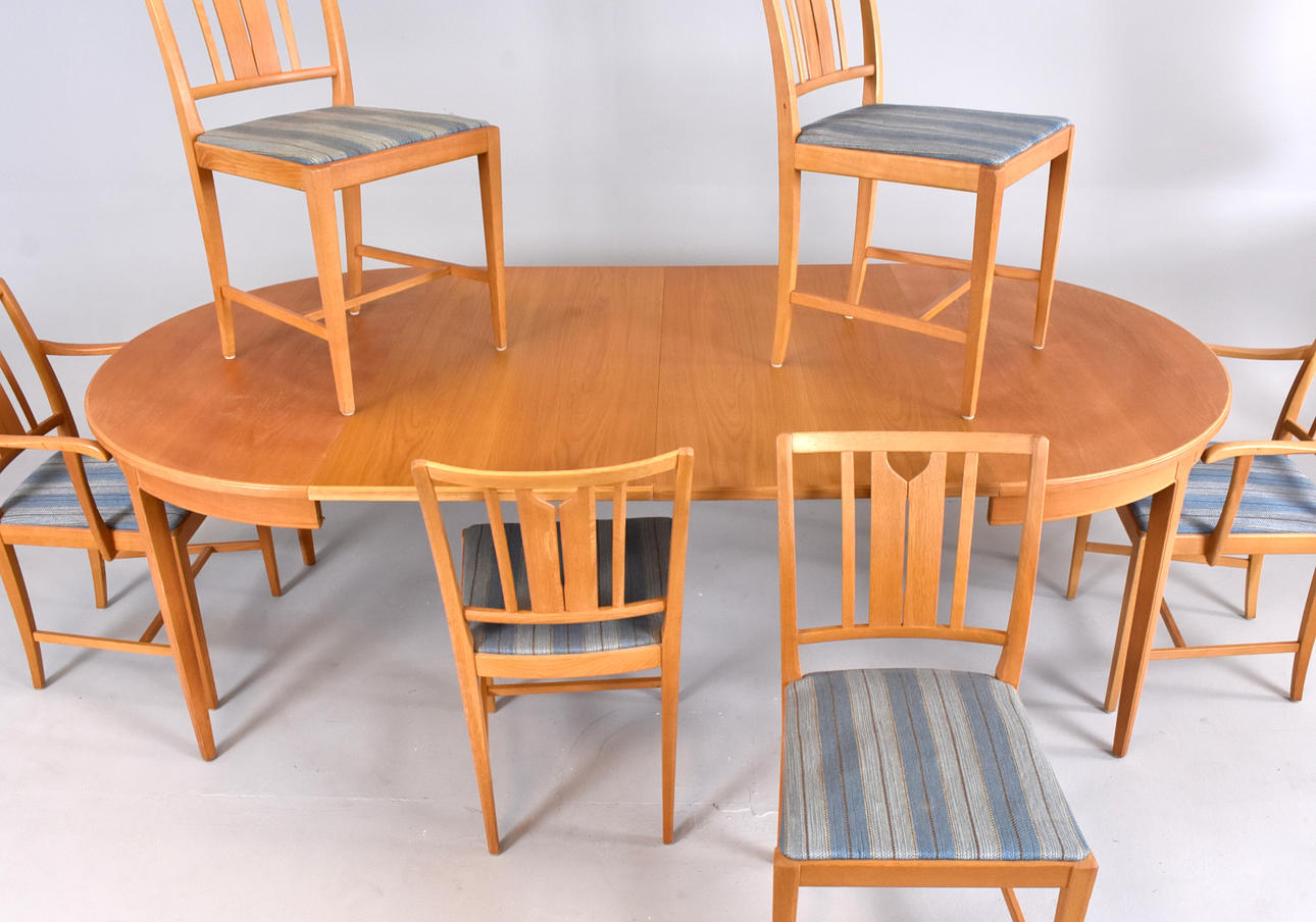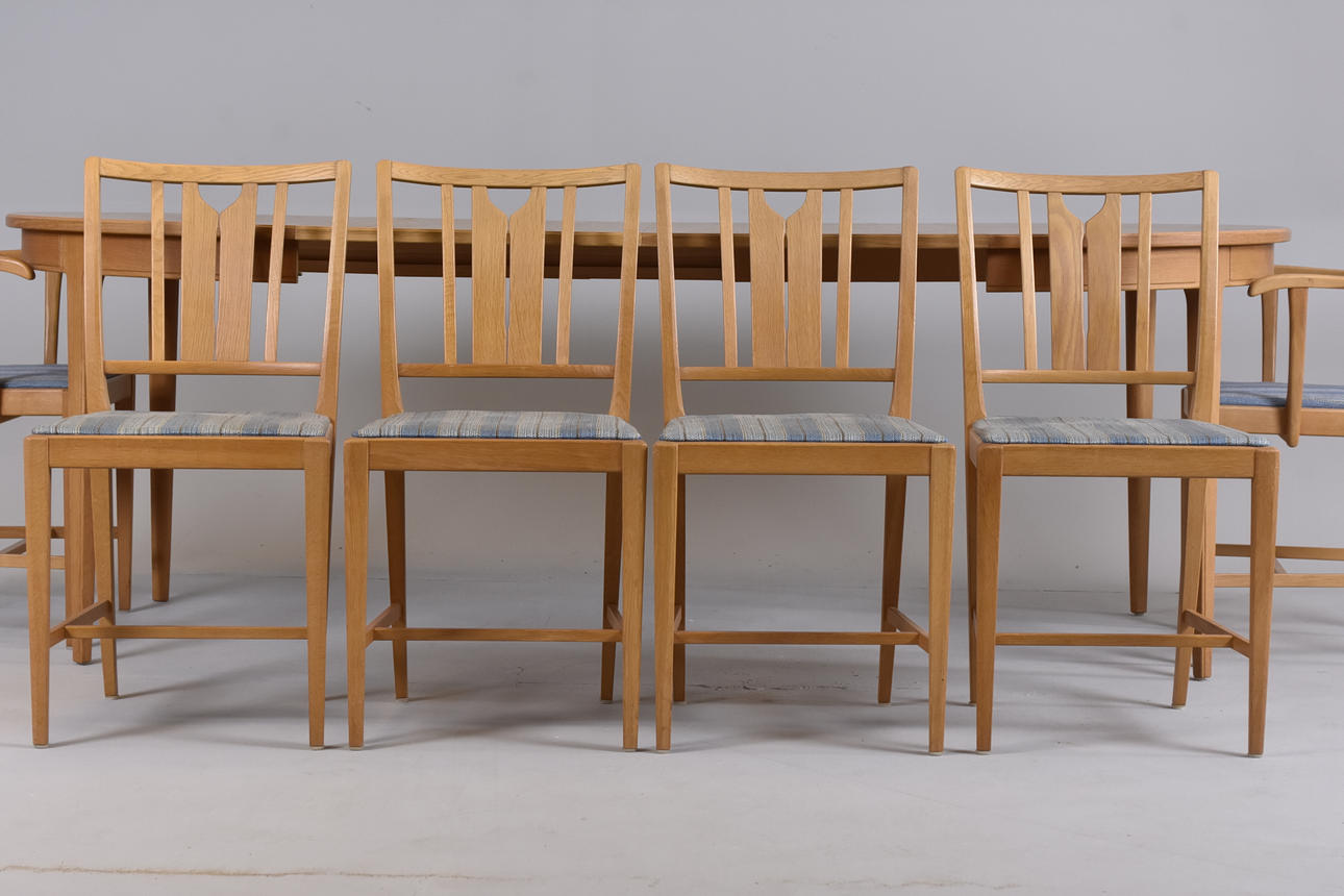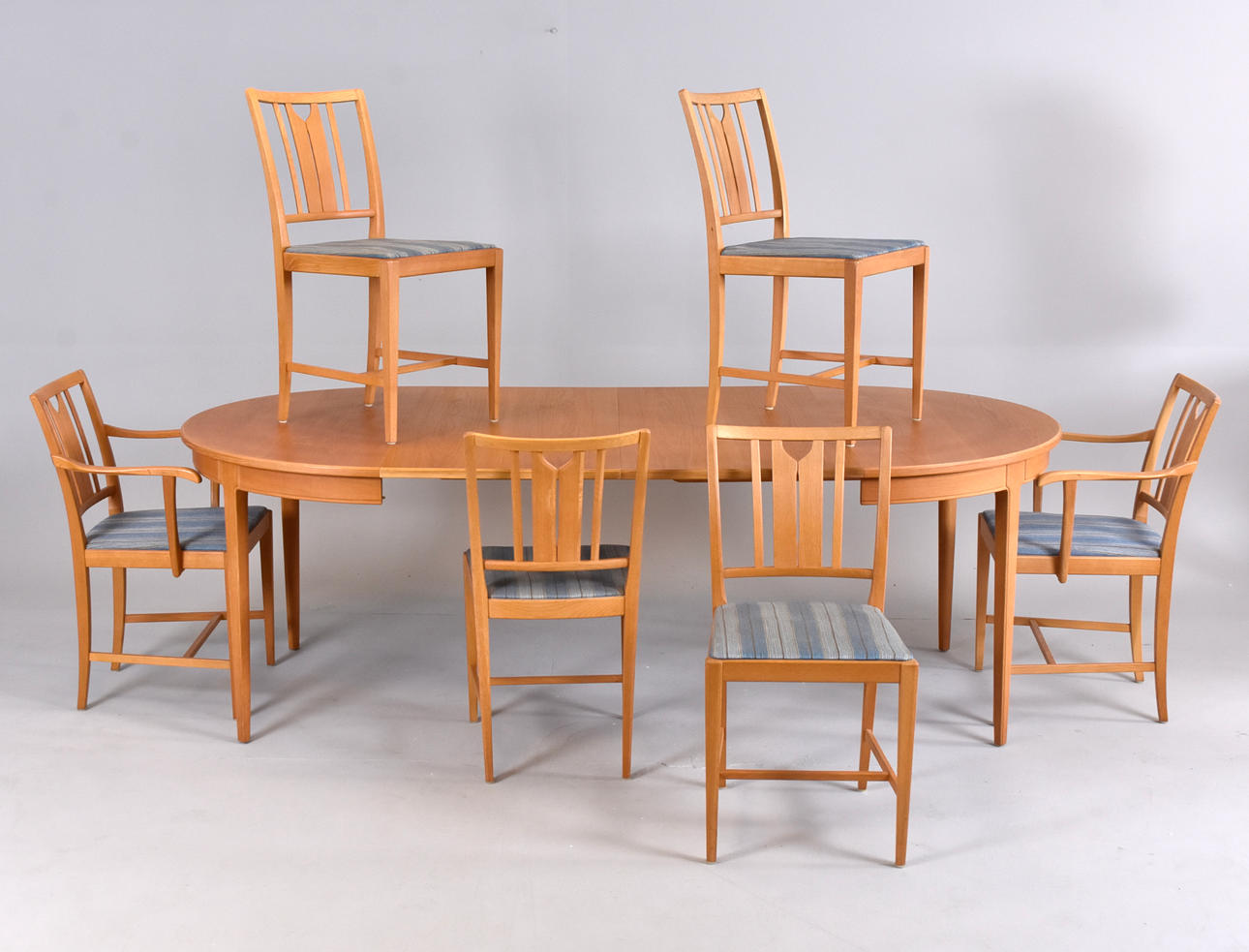 Table: height 74, diameter 115 cm, insert plates, 55 cm Chairs: back height 86, seat height 44 cm.