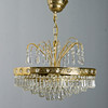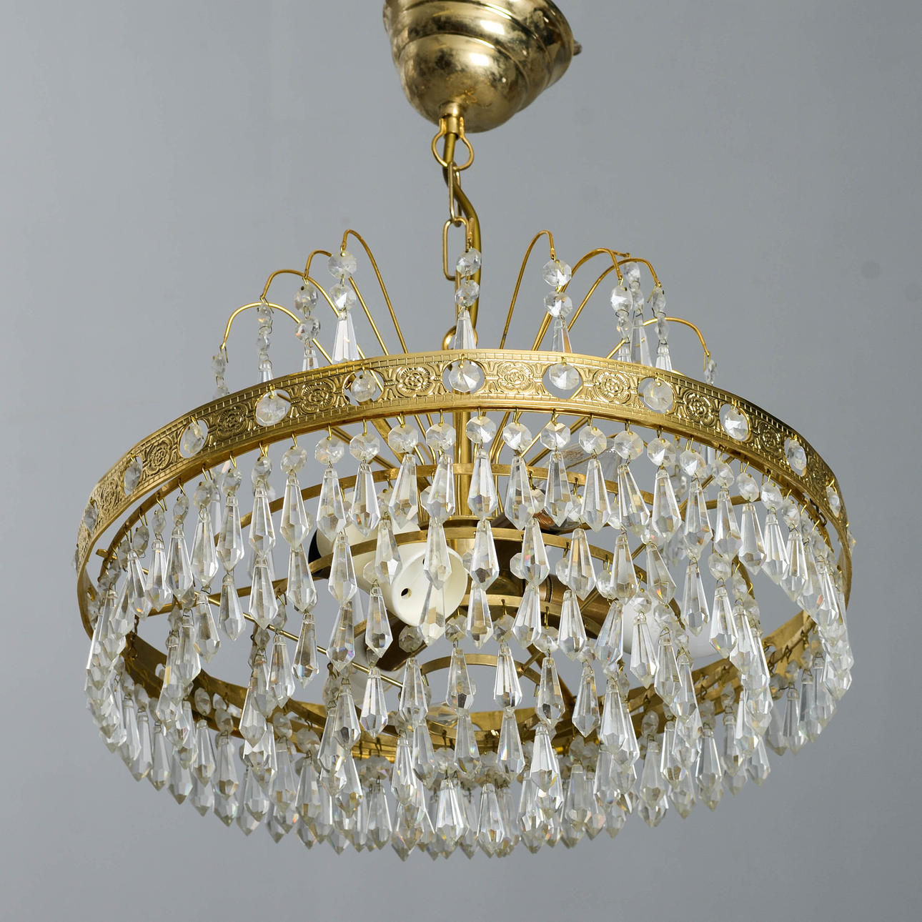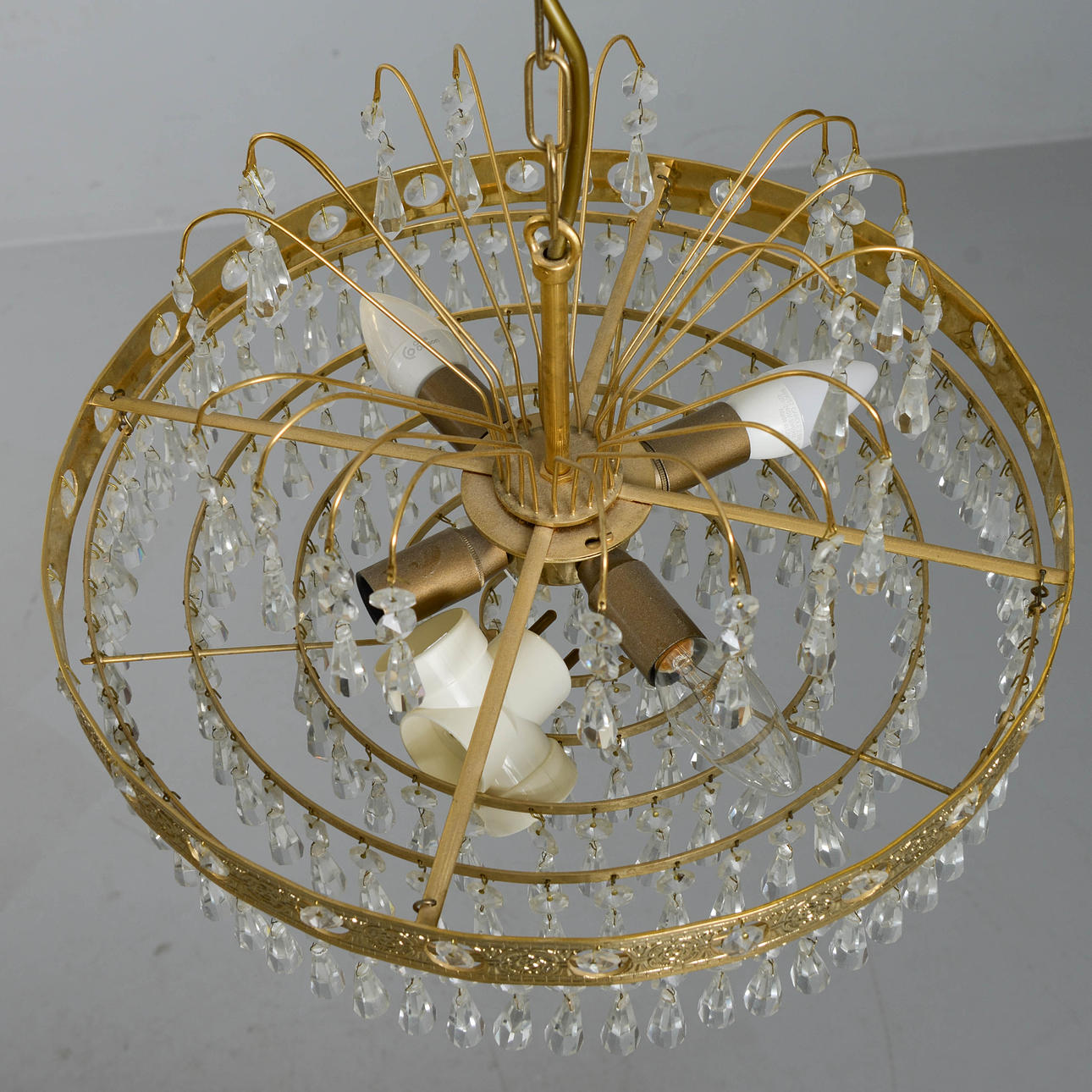 Frame in yellow metal. With 4 electric light points. Diameter 40 cm. Height 28 cm (excluding chain and cord).