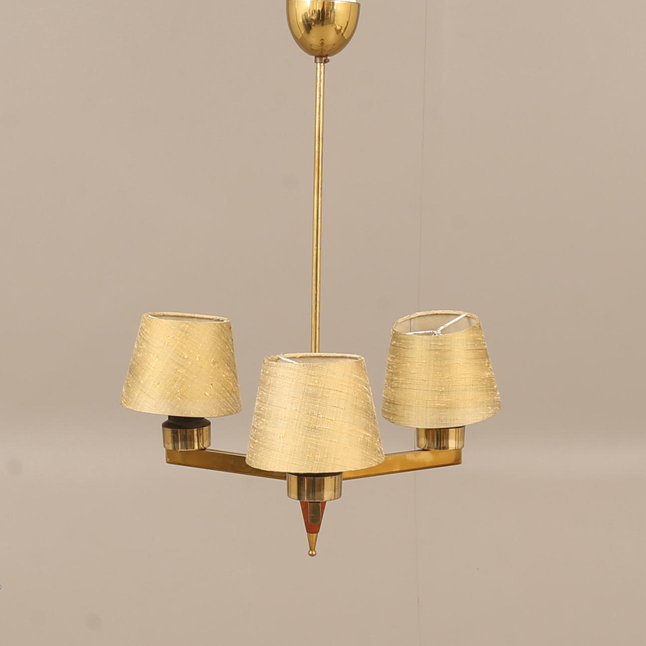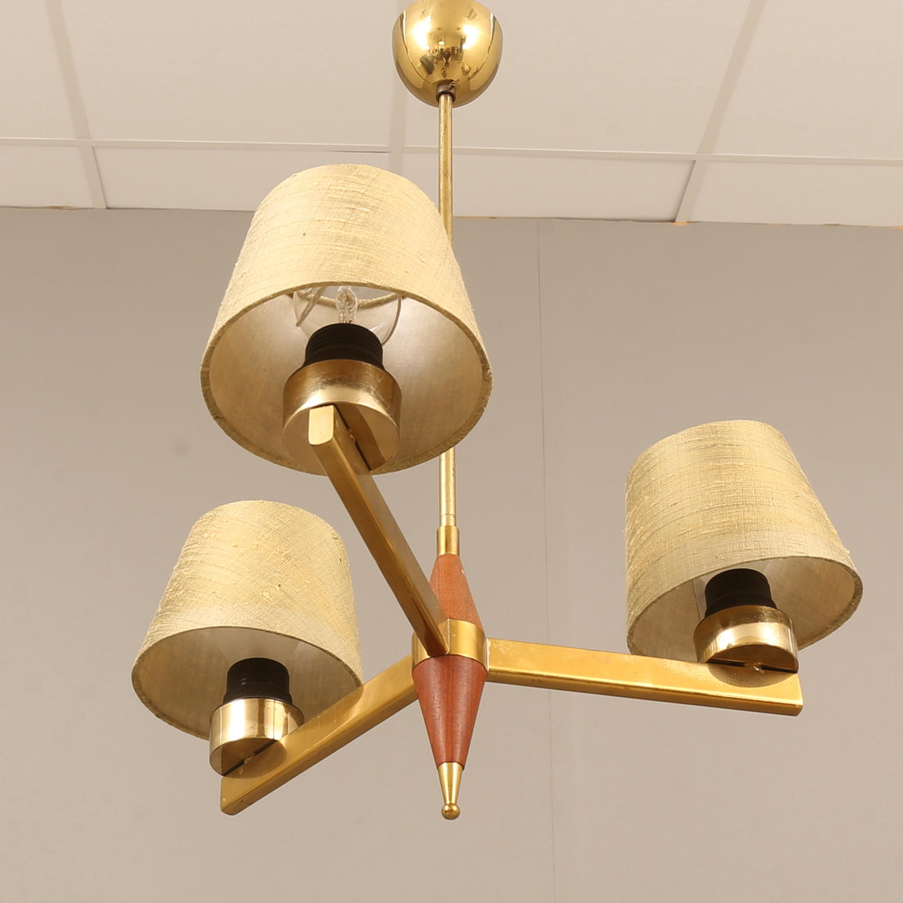 4975837. A mid 20th century teak and brass ceiling lamp.