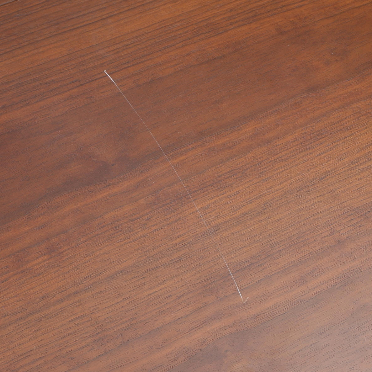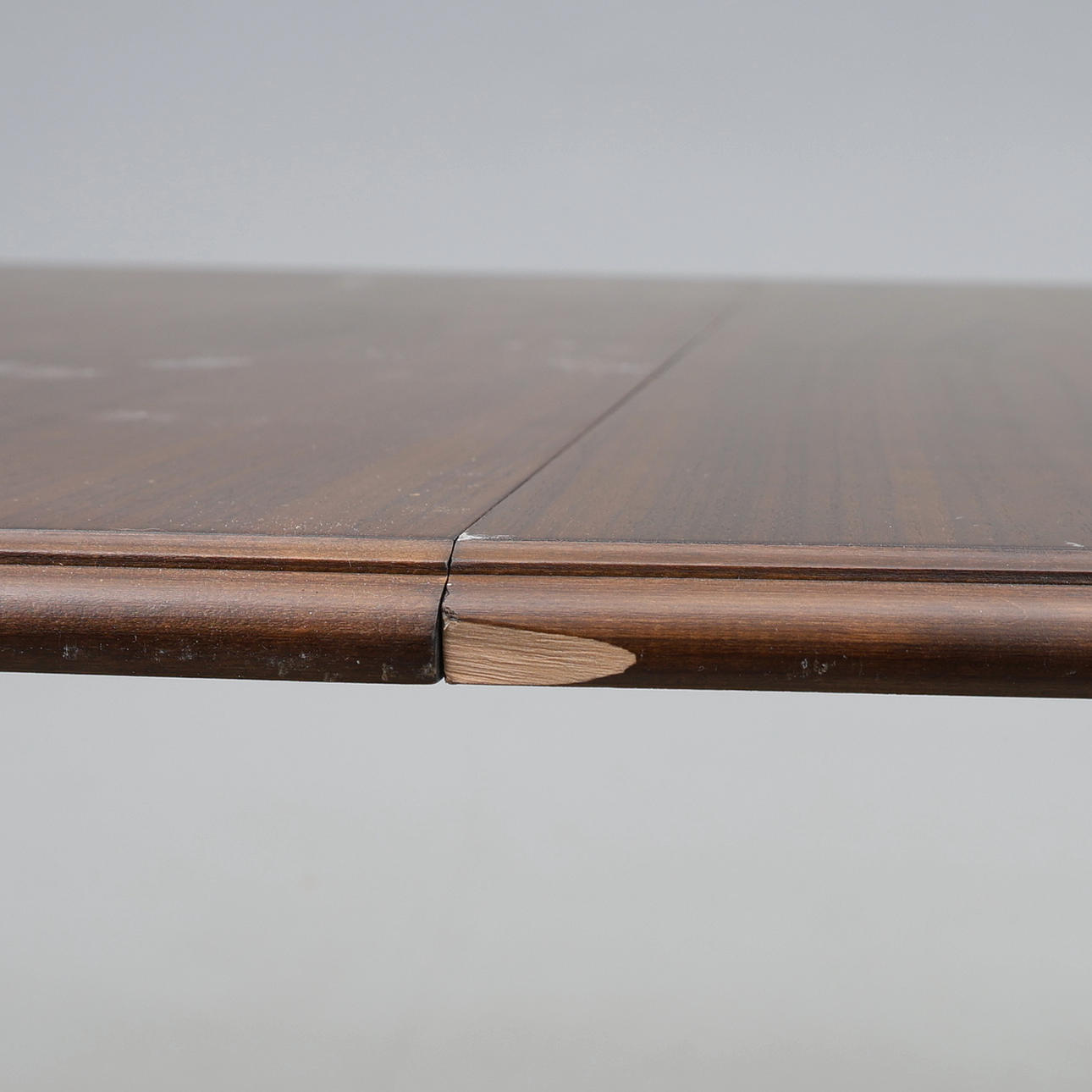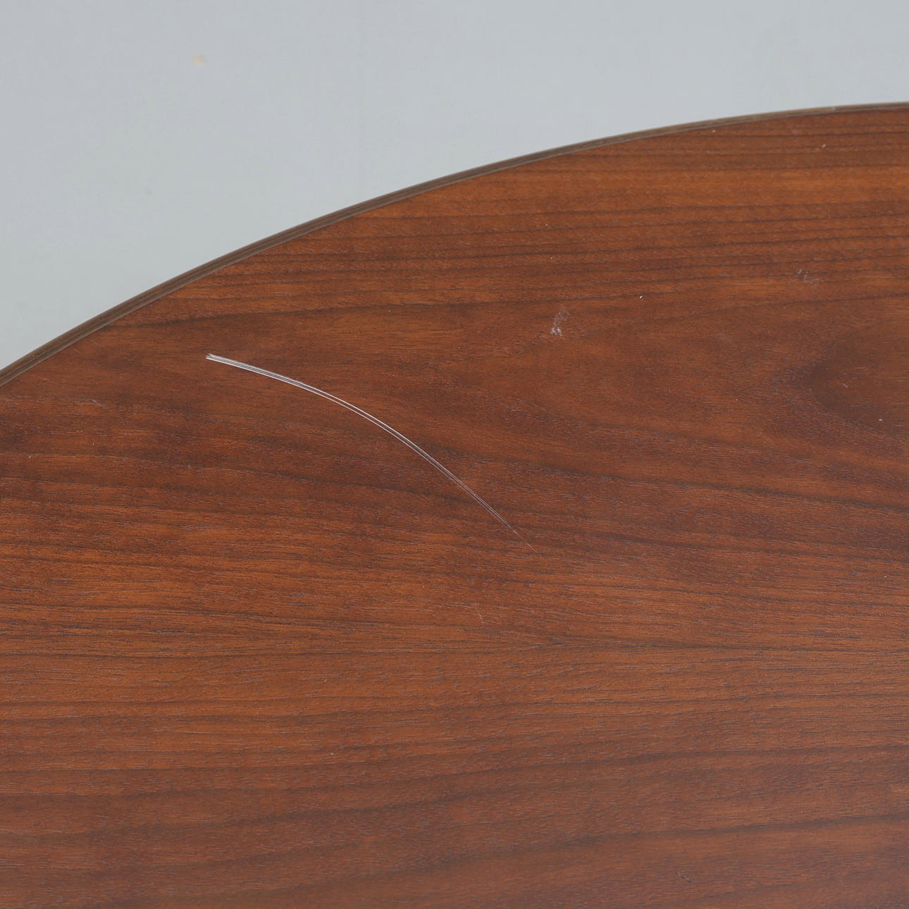 Normal wear and tear, marks, scratches and a lost piece of wood on the underside.