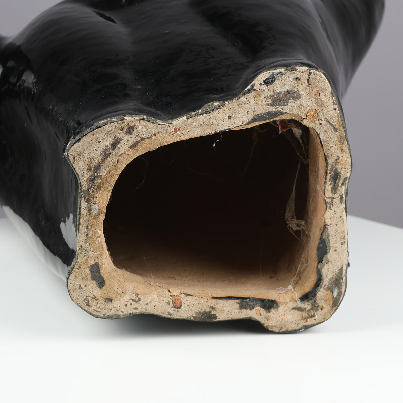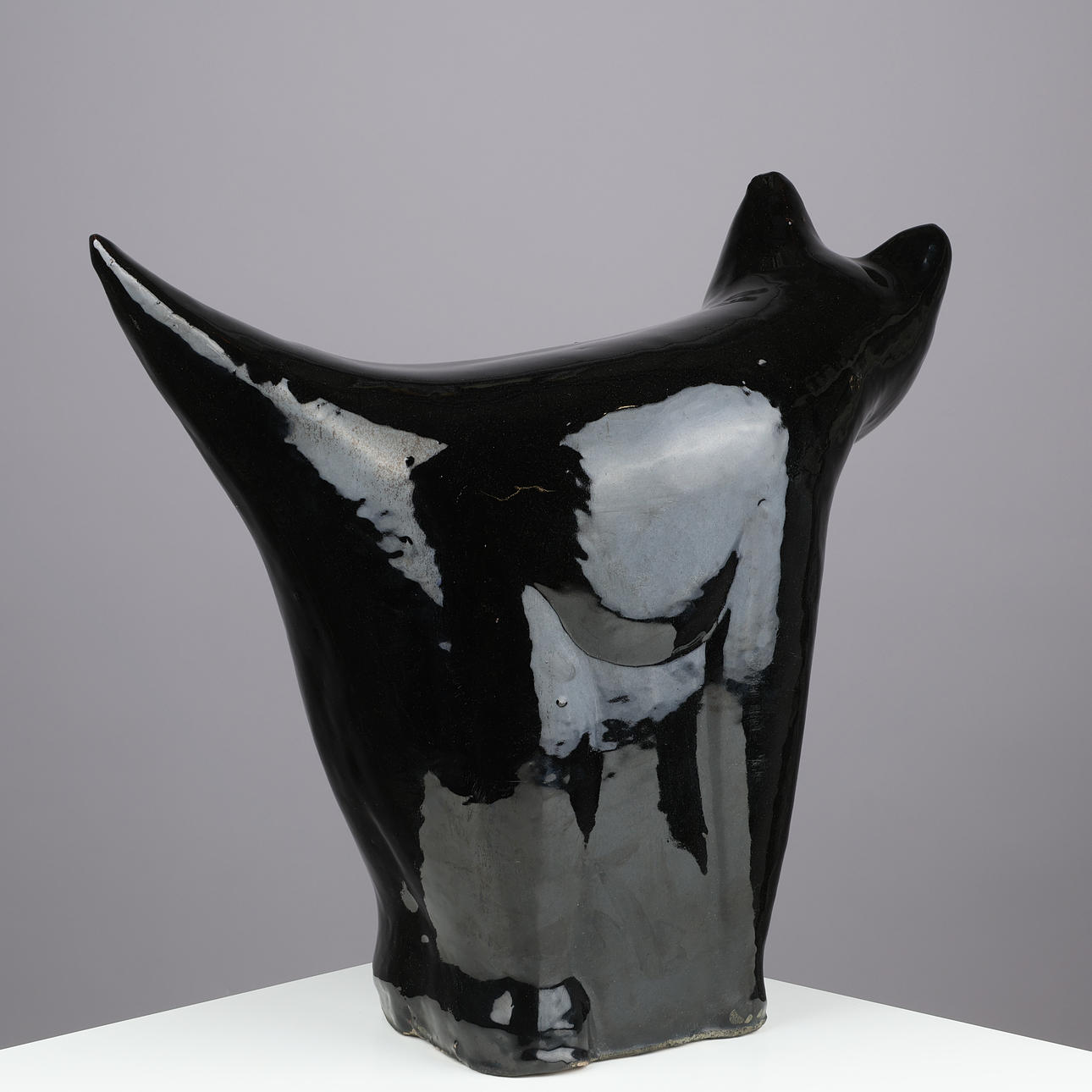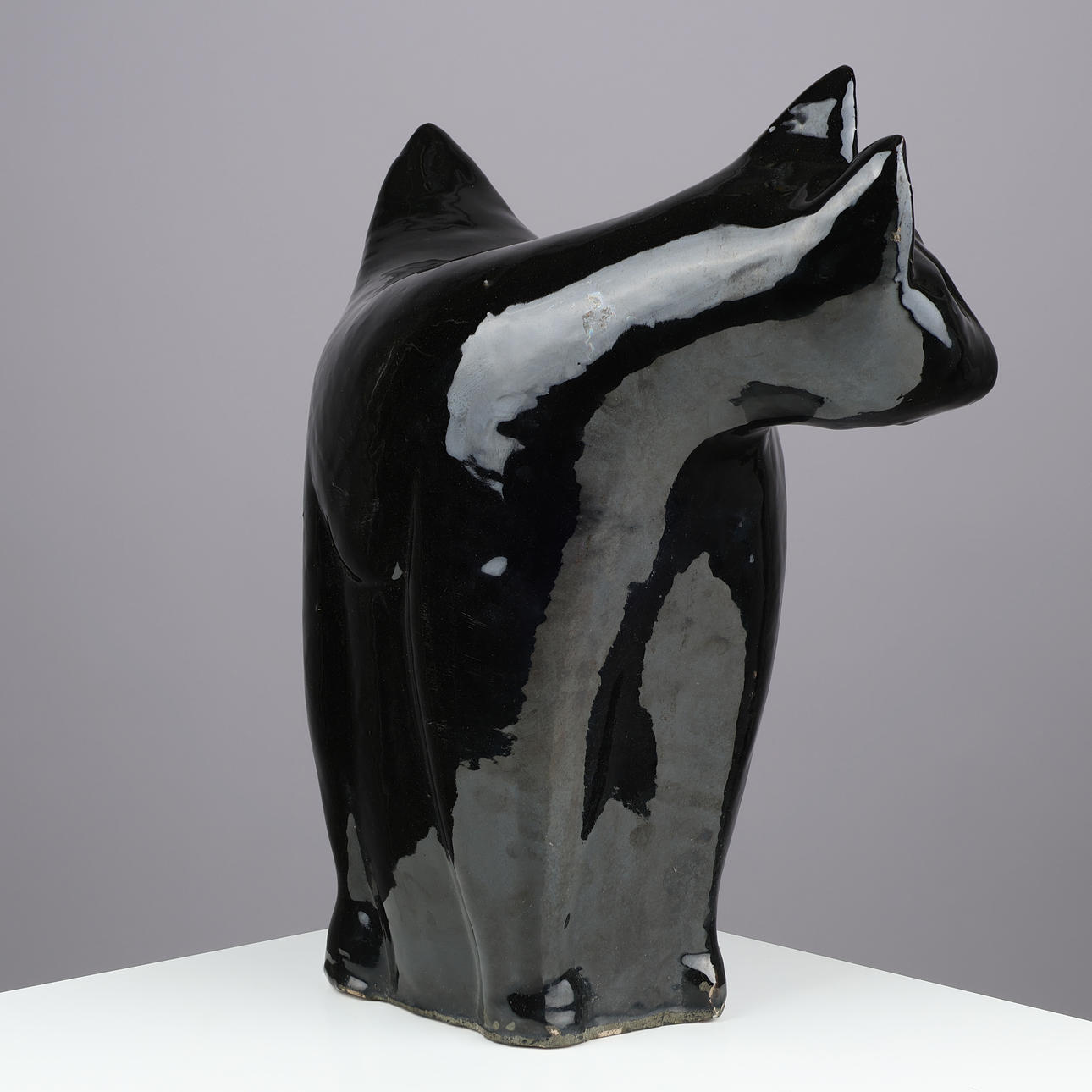 4976182. Large cat-shaped sculpture executed in black-glazed stoneware, unknown designer, 20th century.