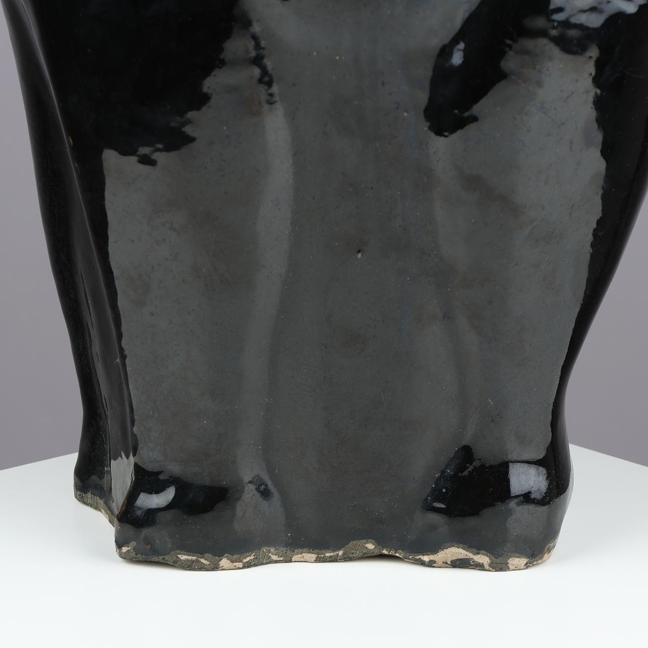 Large cat-shaped sculpture made of black-glazed stoneware. Executed by unknown designer, 20th century.