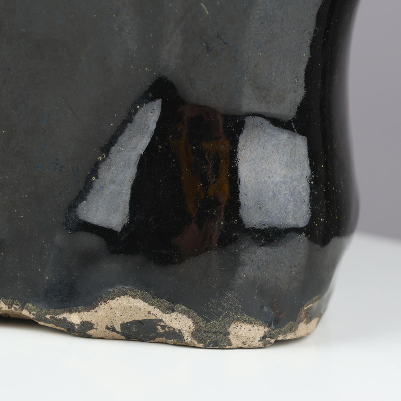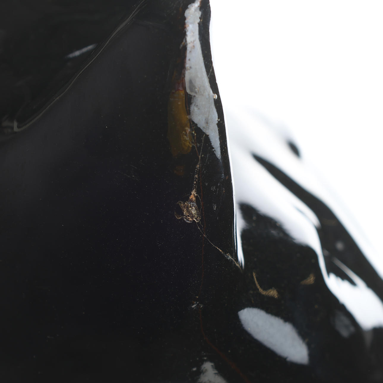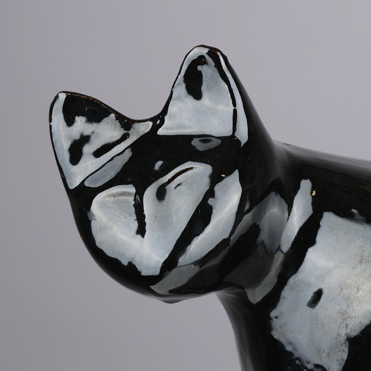Surface scratches and marks. Left ear with cracks in the glaze, possibly after impact.