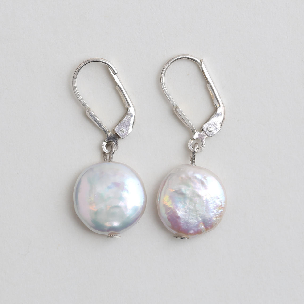 Earring, silver, mother-of-pearl, diameter approx. 11 mm.