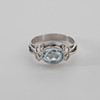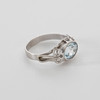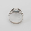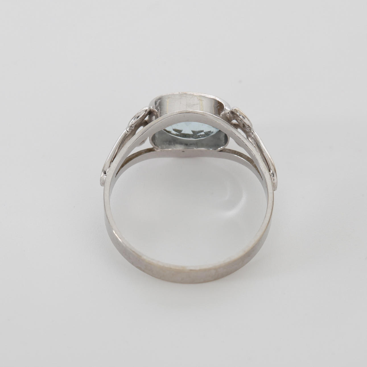 Ring with cut light blue stone, 14K white gold Unreadable stamps pg a wear. Acid tested 14K Ring size approx. 16,9