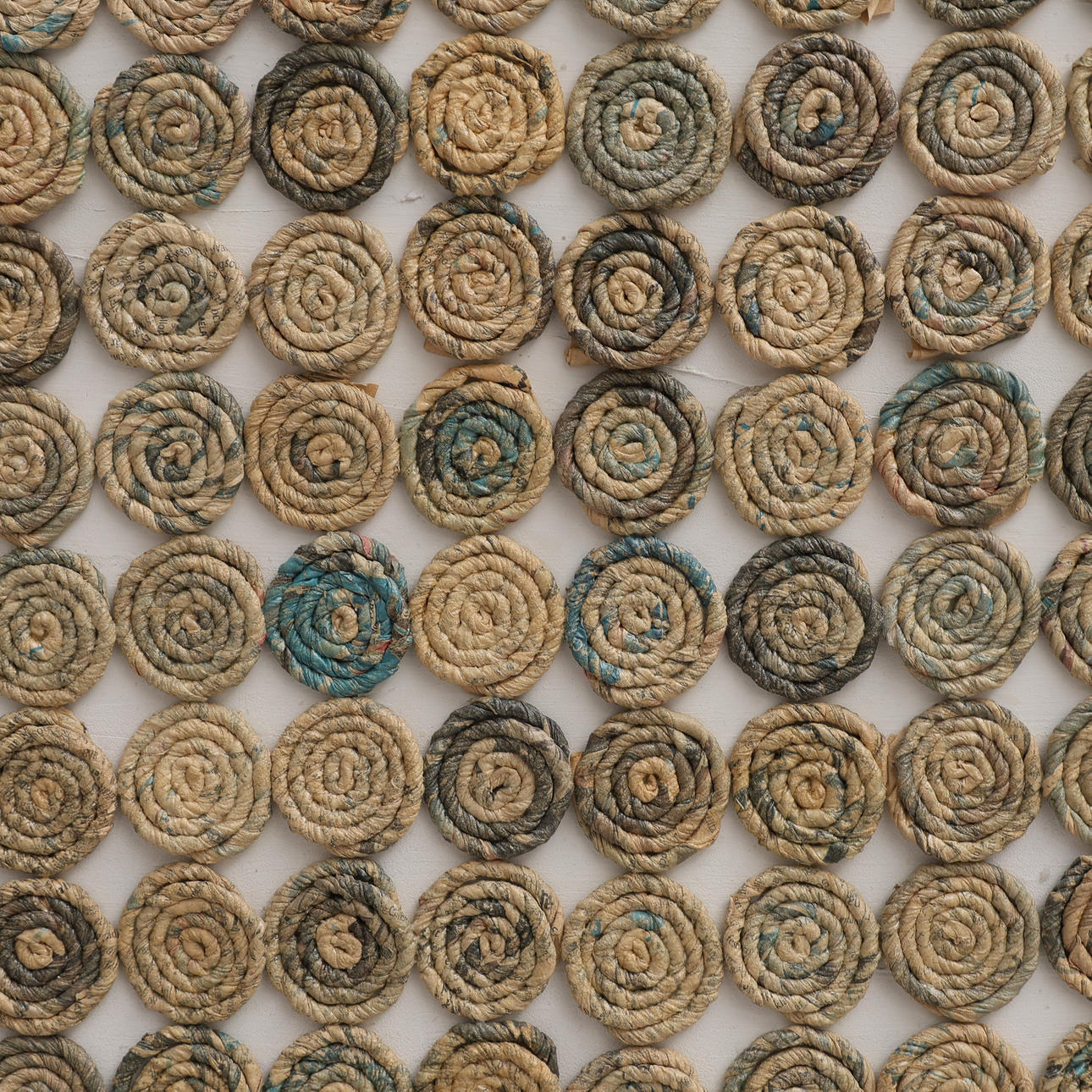 A terg signed and dated -10, also signed and dated on the edge of the frame, application on panel, frame dimensions 124x124 cm.