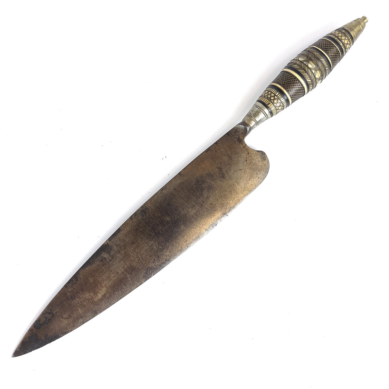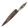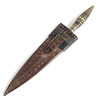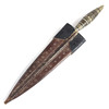 Blade in metal, shank in stone and metal. Leather knife sheath. Length 30 cm, length incl. knife sheath approx. 34 cm.