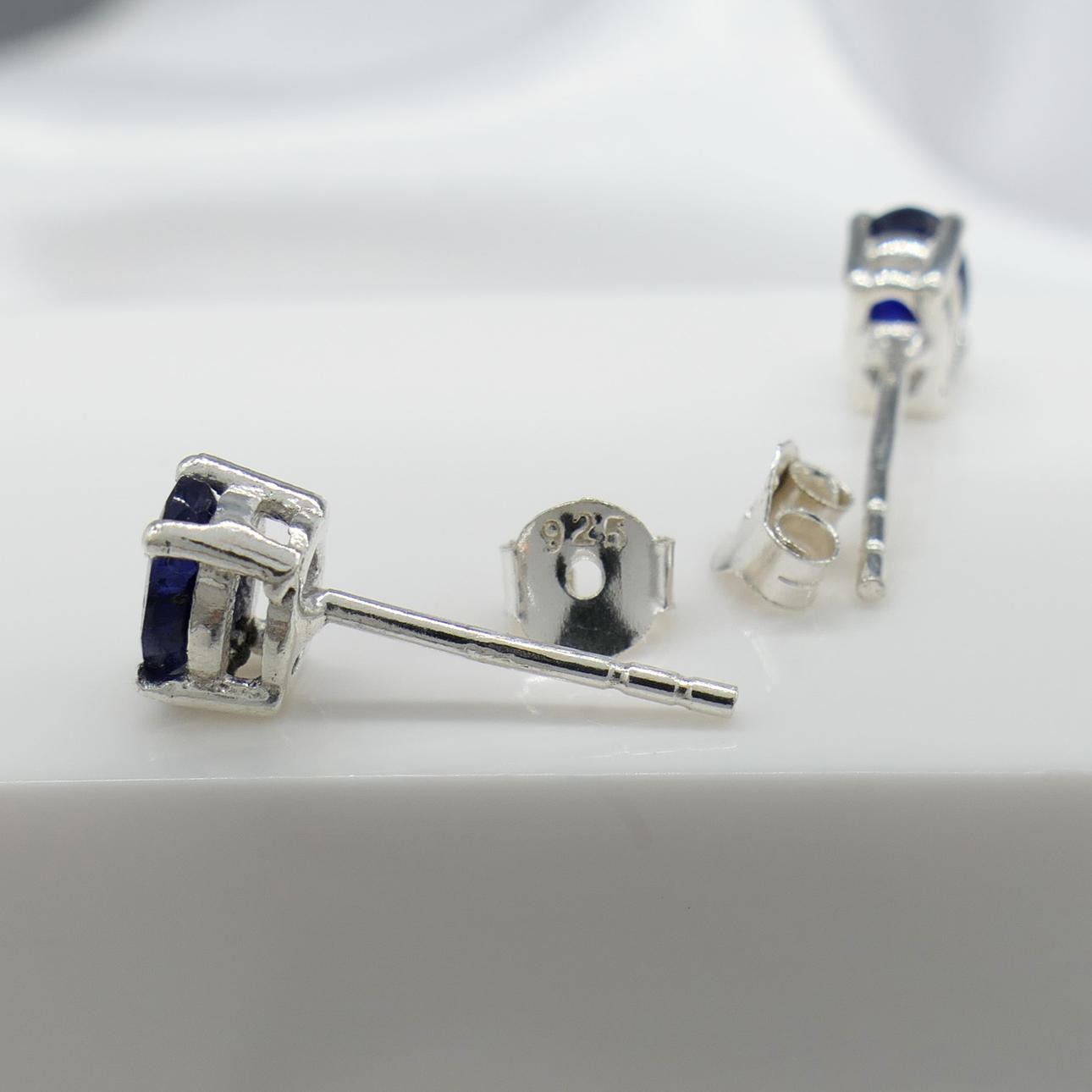 Studs: 925 silver; claw set; butterfly backs; weight 1.0 grams.