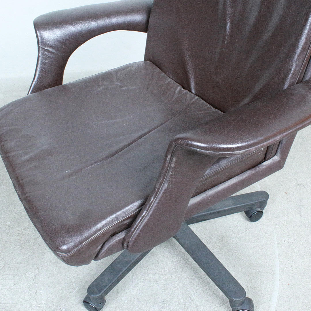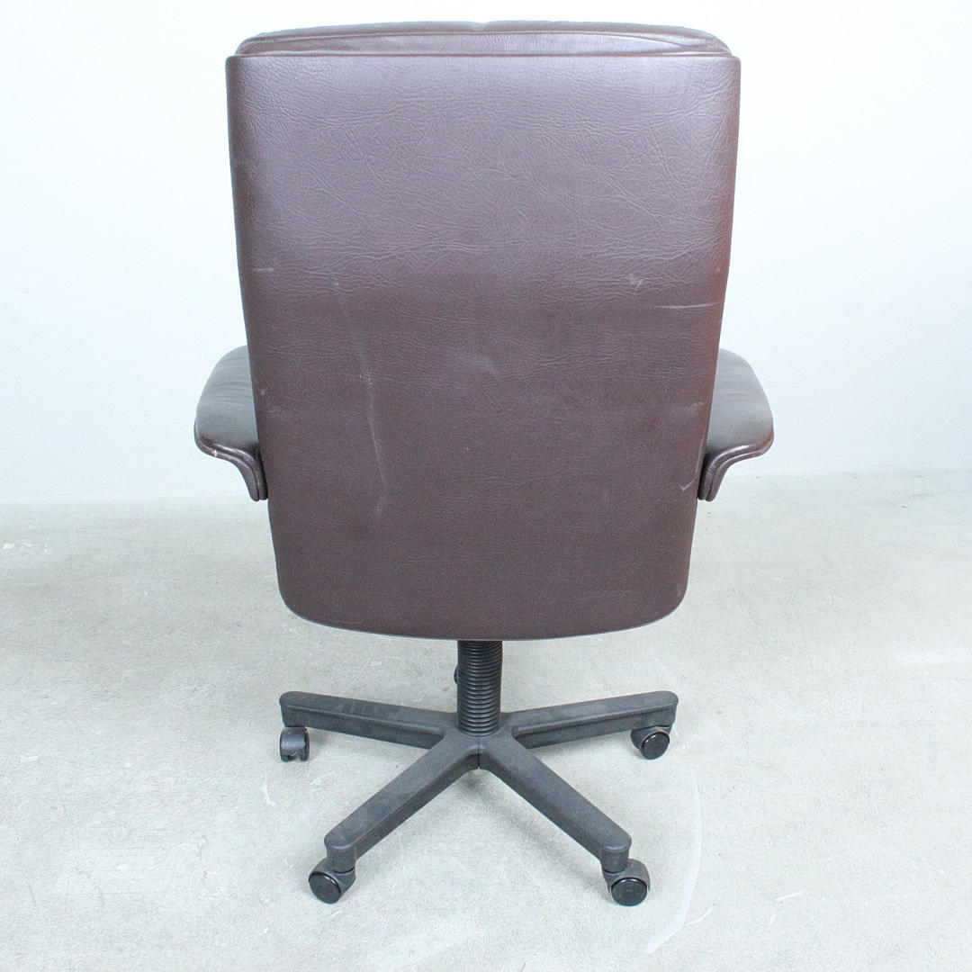 Office chair, leather, rollable.